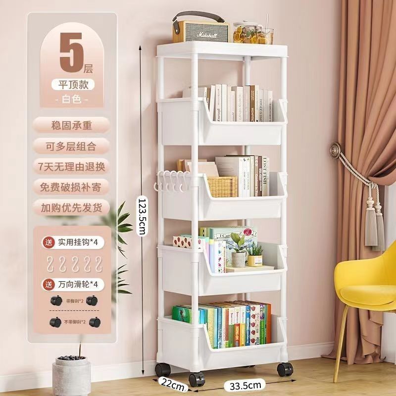 책장 이동식 보관 랙 다층 보관 랙 가정용 어린이 장난감 트롤리 바닥 스탠딩 데스크탑 간단한 책장