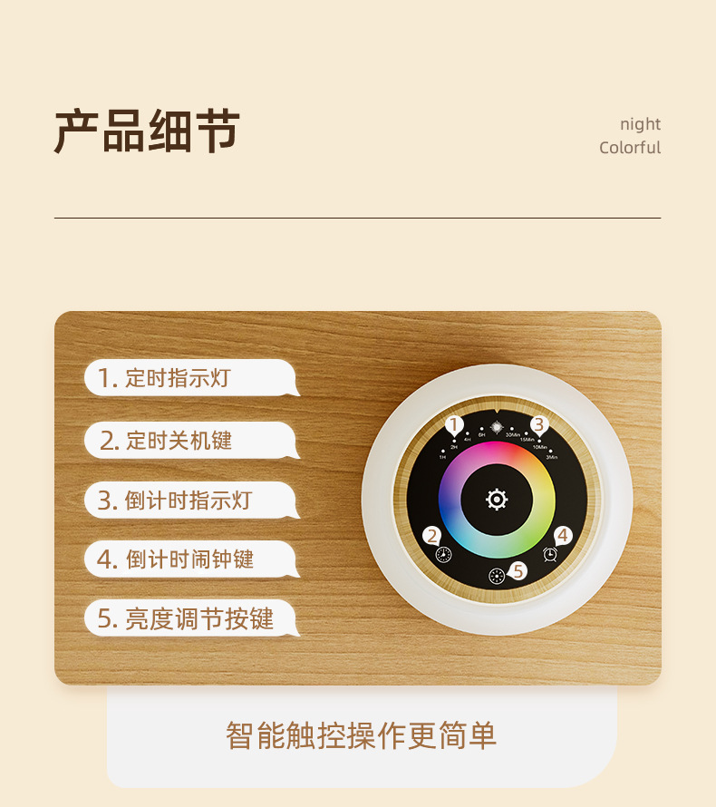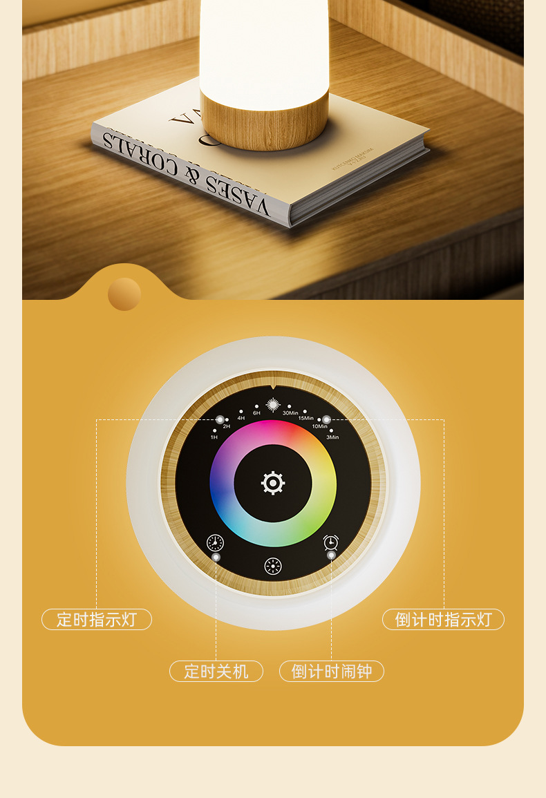 어린이 침대 옆 터치형 분위기 조명 LED 야간 조명 아기용 USB 충전 타이머 다채로운 창의적인 다기능 선물 조명