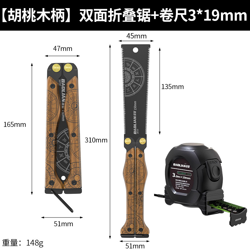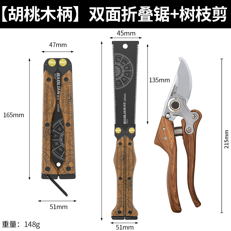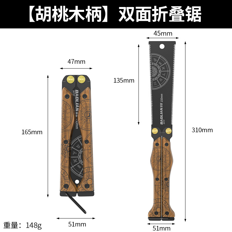 Baolian 토템 나비 톱 양면 나무 손잡이 접이식 고강도 빠른 노동 절약 목재 톱 도구 휴대용 수제 톱