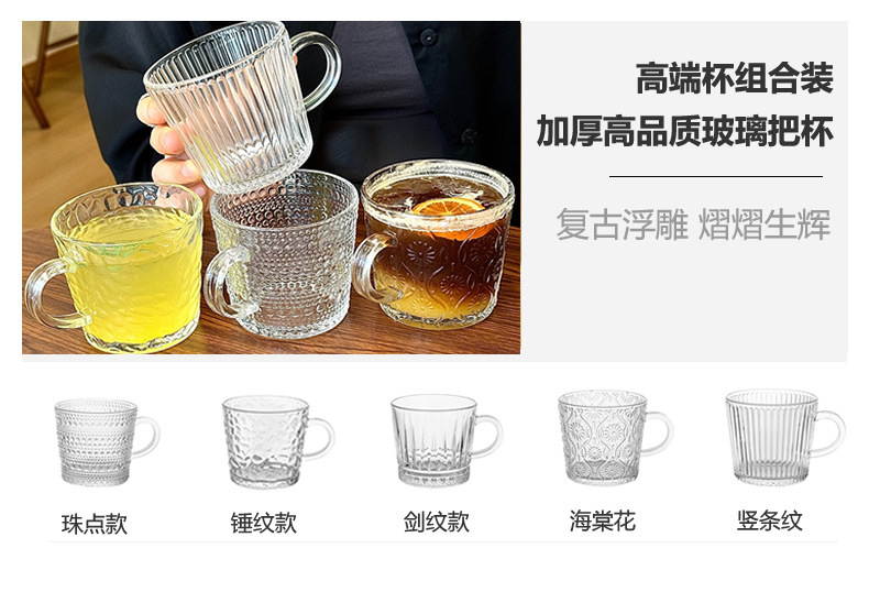 손잡이가 있는 ins 유리 컵, 가정용 아침 식사 컵, 인터넷 연예인 양각 물컵, 고급스러운 커피 컵, 기념품 컵스토어 가기