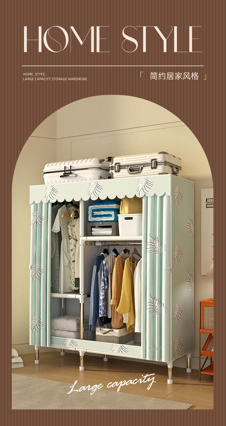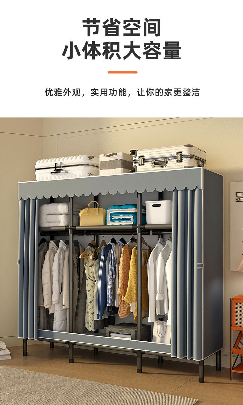 옷장 홈 침실 설치가 필요없는 접이식 간단한 천 옷장 임대실 전체 강철 프레임 강력하고 내구성이 뛰어난 옷장