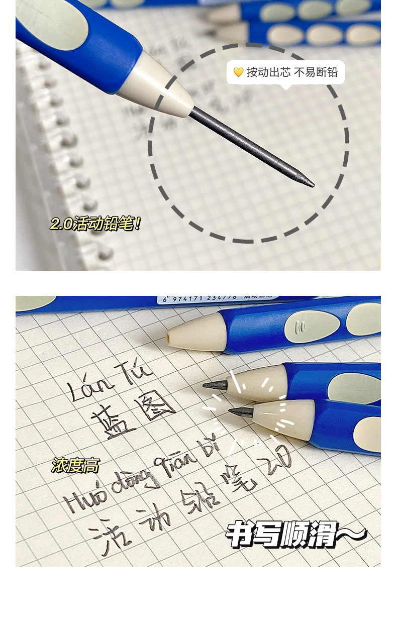 고급스러운 2.0m 자동연필, 유치원 선물, 삼각형, 깨지기 쉽지 않은 연필, 깎지 않은 푸시연필