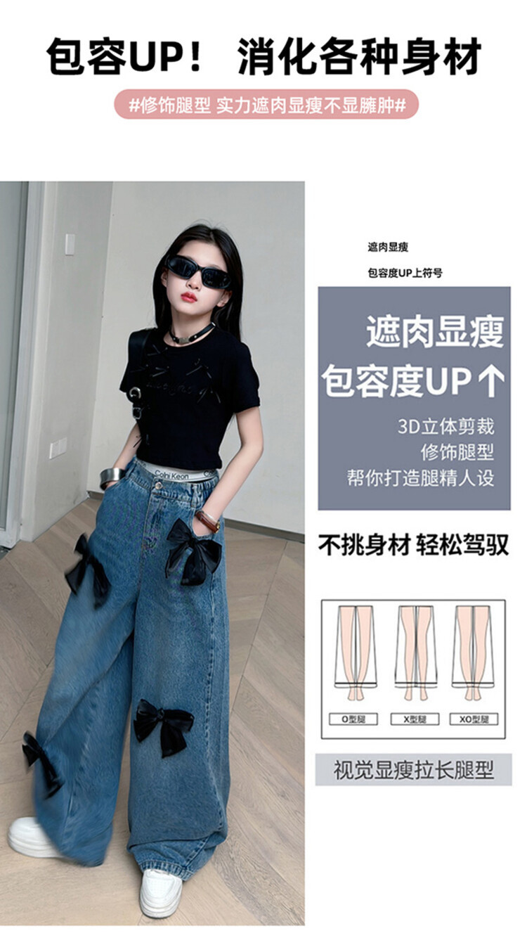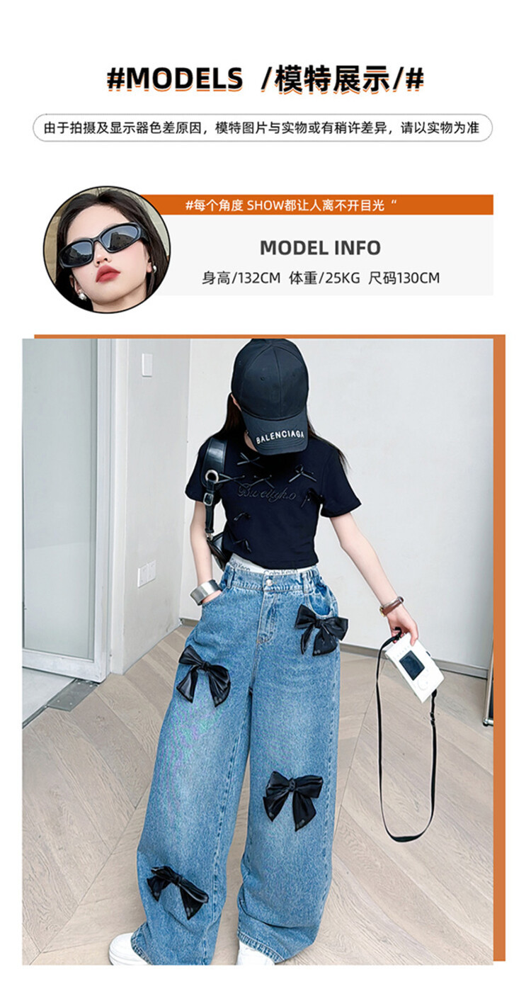 국경 간 도매 2025 여름 새 스타일 여자 청바지 투피스 세트 보우 와이드 레그 팬츠 여자를위한 새로운 바지스토어 가기