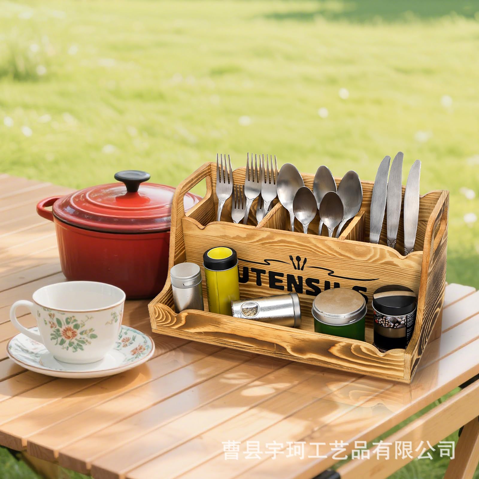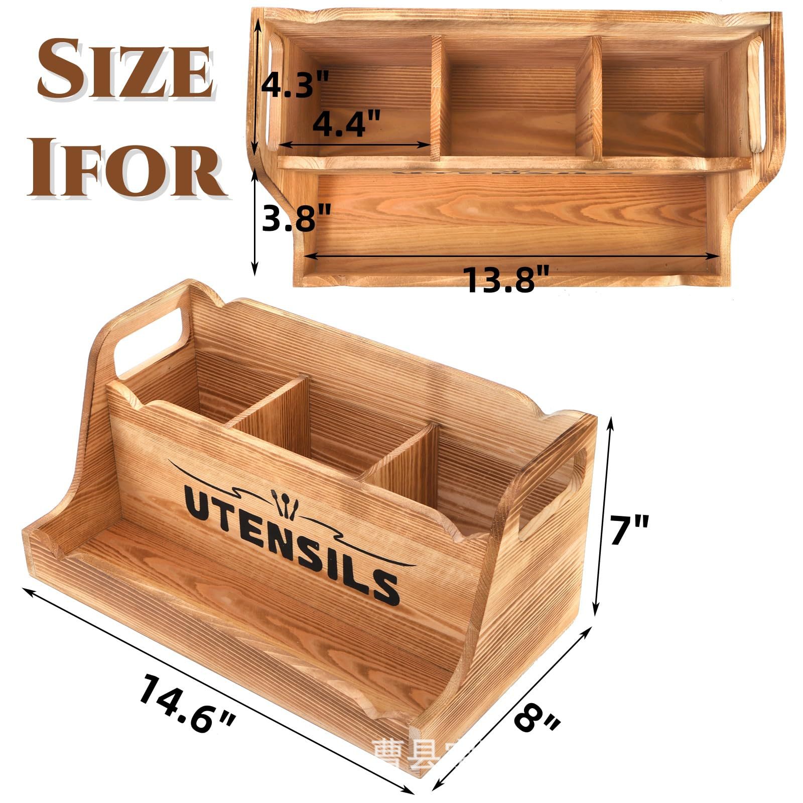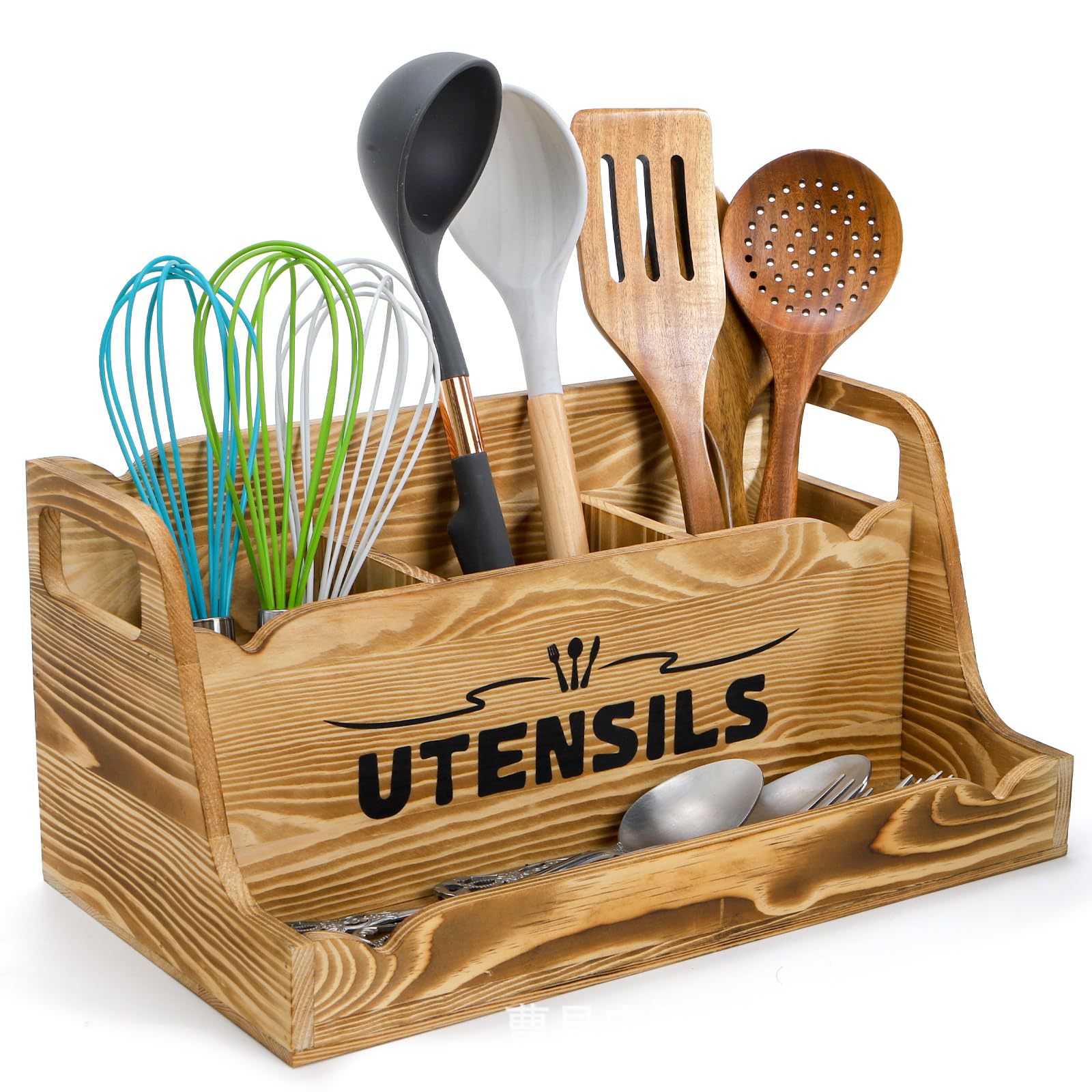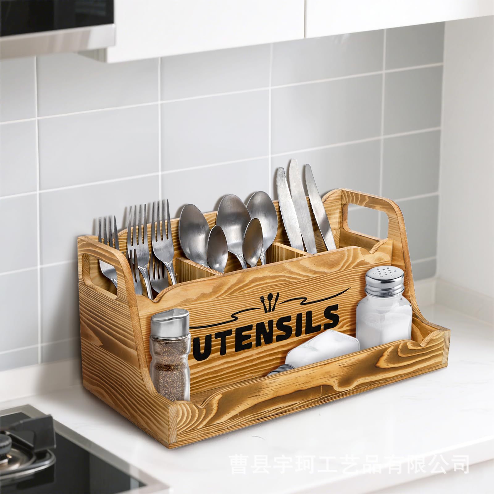 휴대용 손잡이가 있는 나무 식기 보관 상자 주방 요리 주걱 칼과 포크 수납 상자 데스크탑 조미료 식기 상자스토어 가기