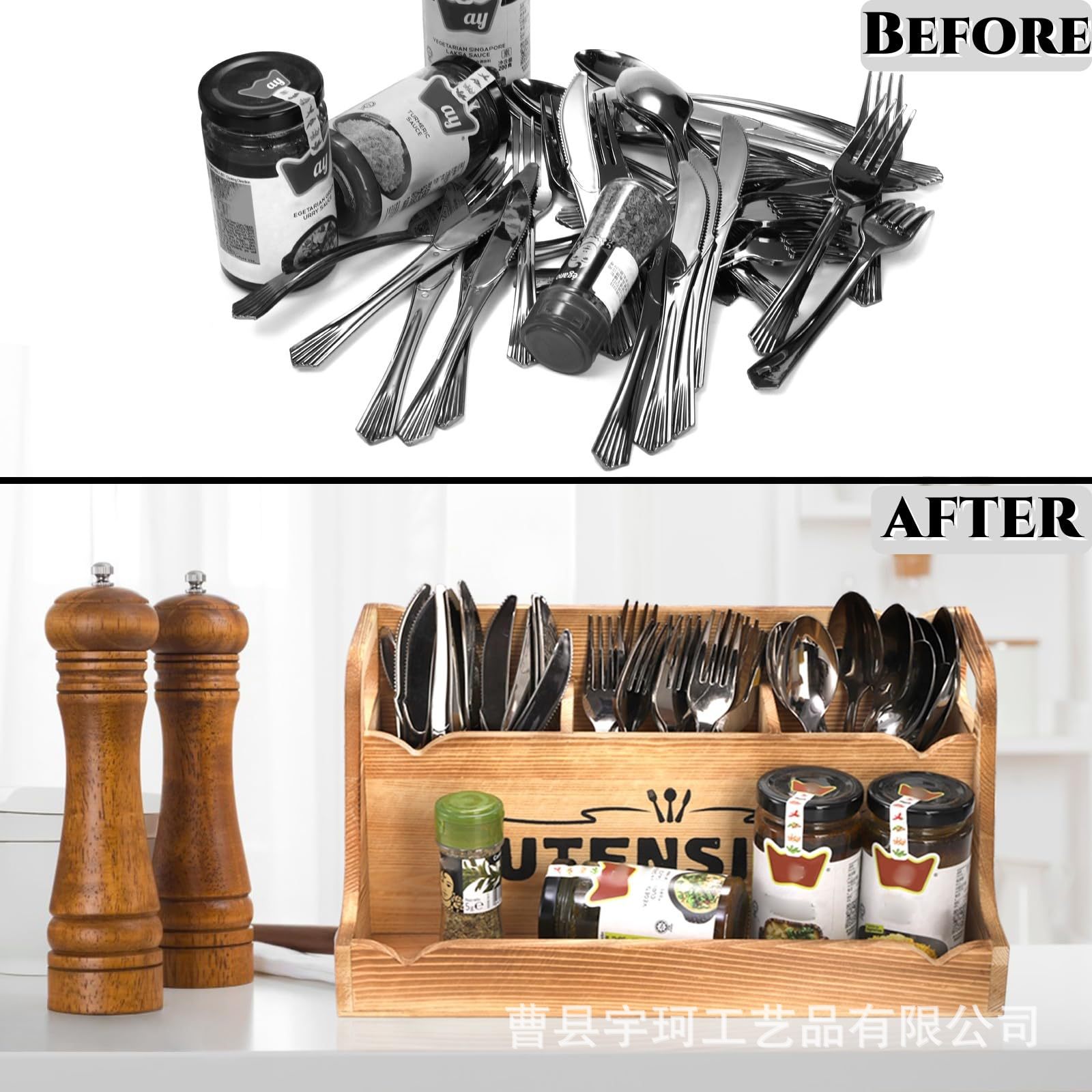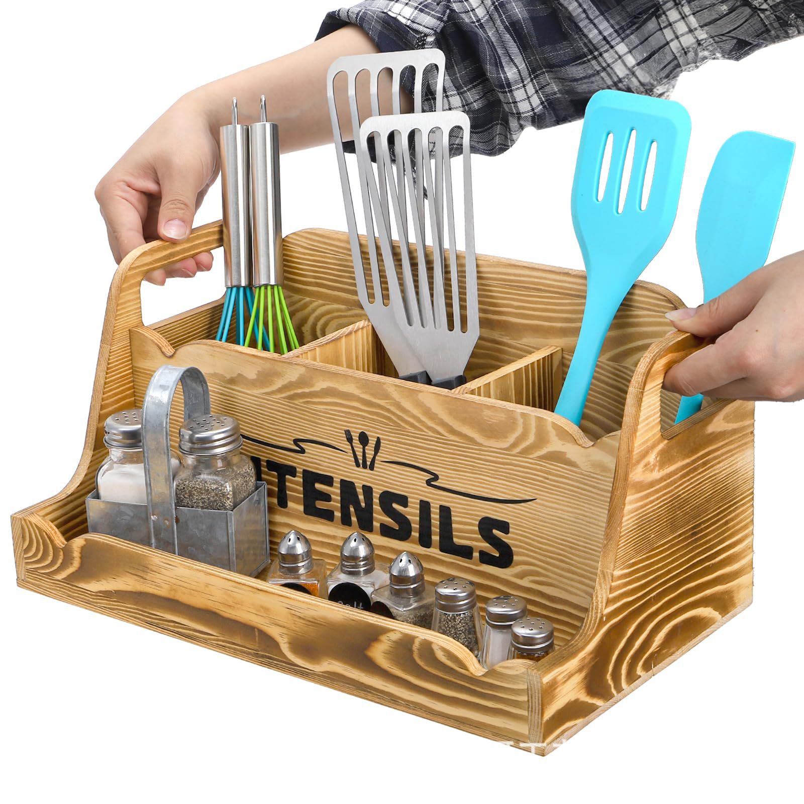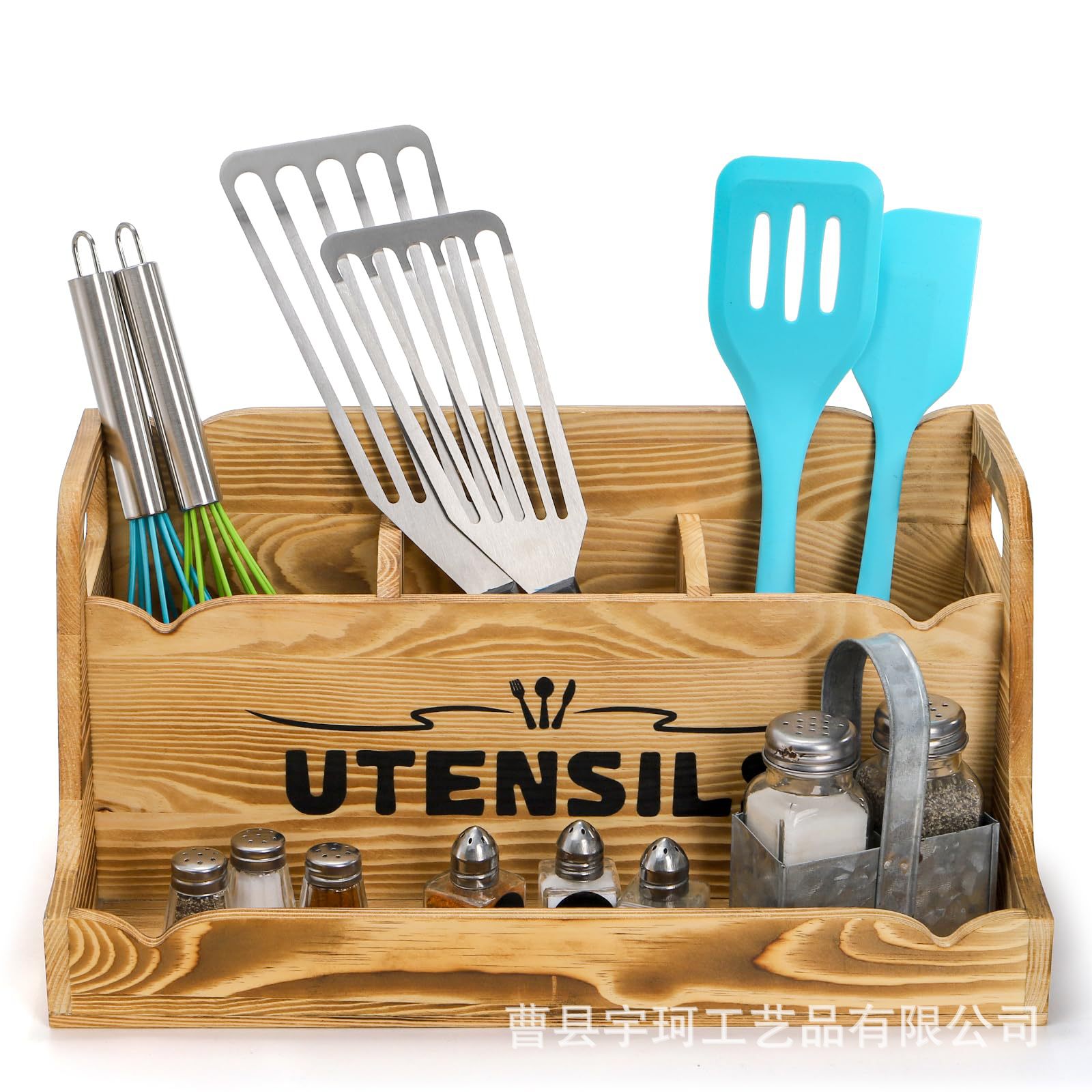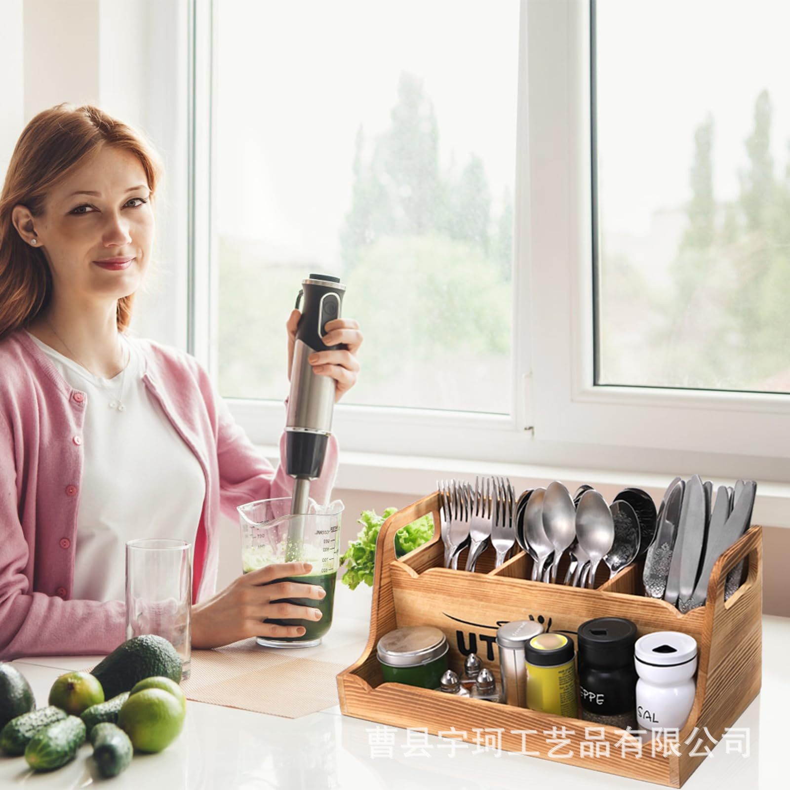 휴대용 손잡이가 있는 나무 식기 보관 상자 주방 요리 주걱 칼과 포크 수납 상자 데스크탑 조미료 식기 상자스토어 가기