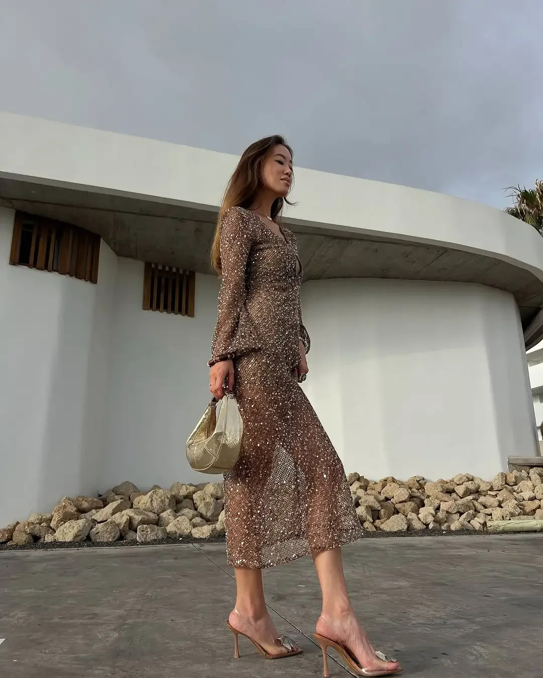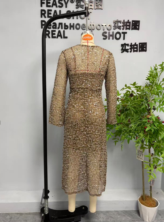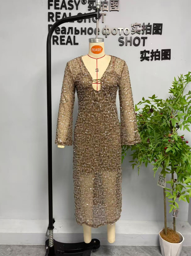 알리익스프레스 인기 상품 해외 유럽 및 미국 여성 의류 도매 초봄 신상 스팽글 장식 섹시 패션 원피스