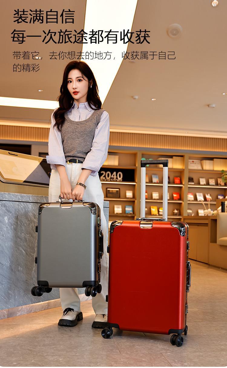 새로운 스타일의 여행 가방 여성용 비밀번호 상자 남성용 비즈니스 탑승 케이스 학생 트롤리 케이스 알루미늄 프레임 자동 범용 휠 가방