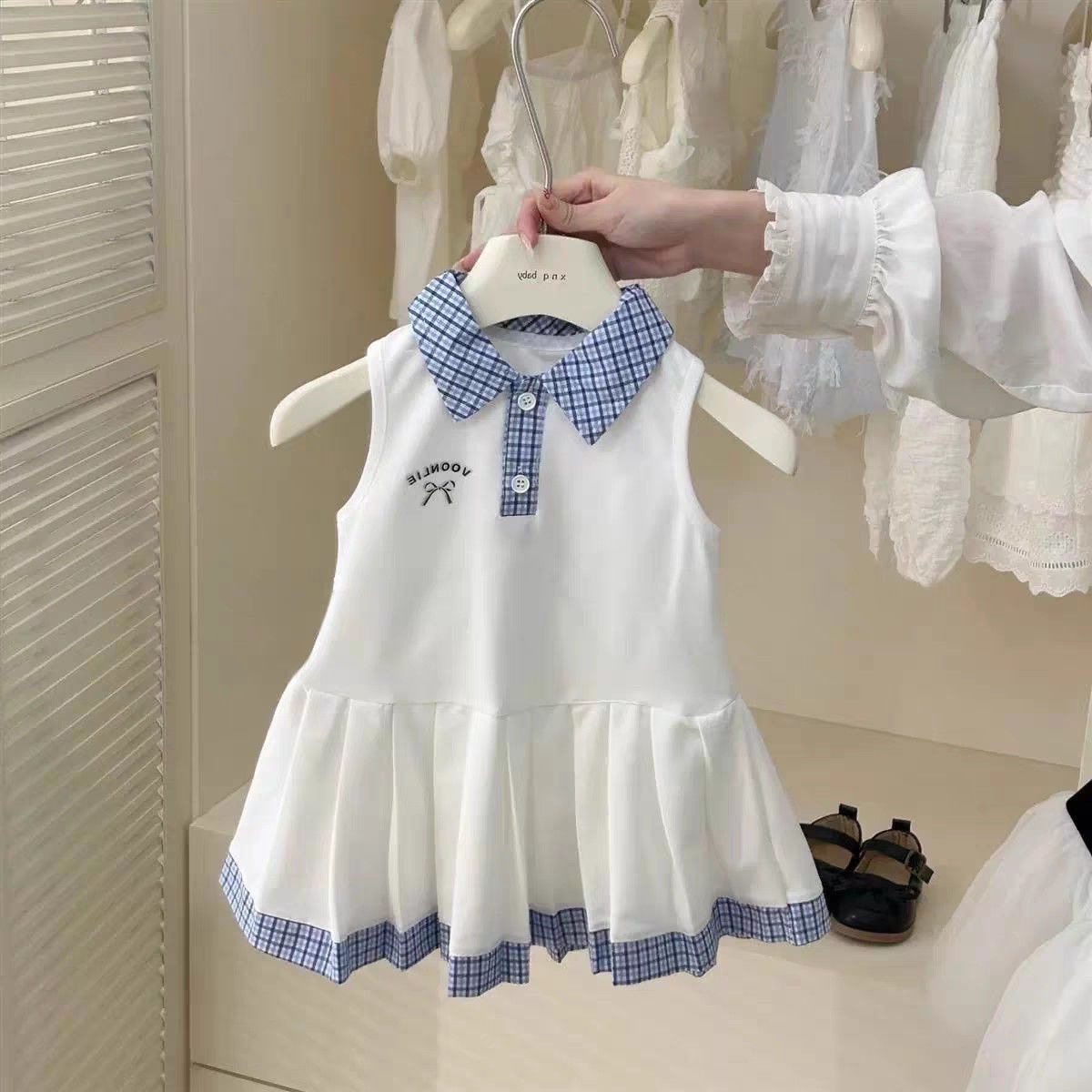 여자 여름 드레스 아기 유행 어린이 맞춤형 유행 한국 스타일 대학 격자 무늬 옷깃 보우 공주 드레스스토어 가기