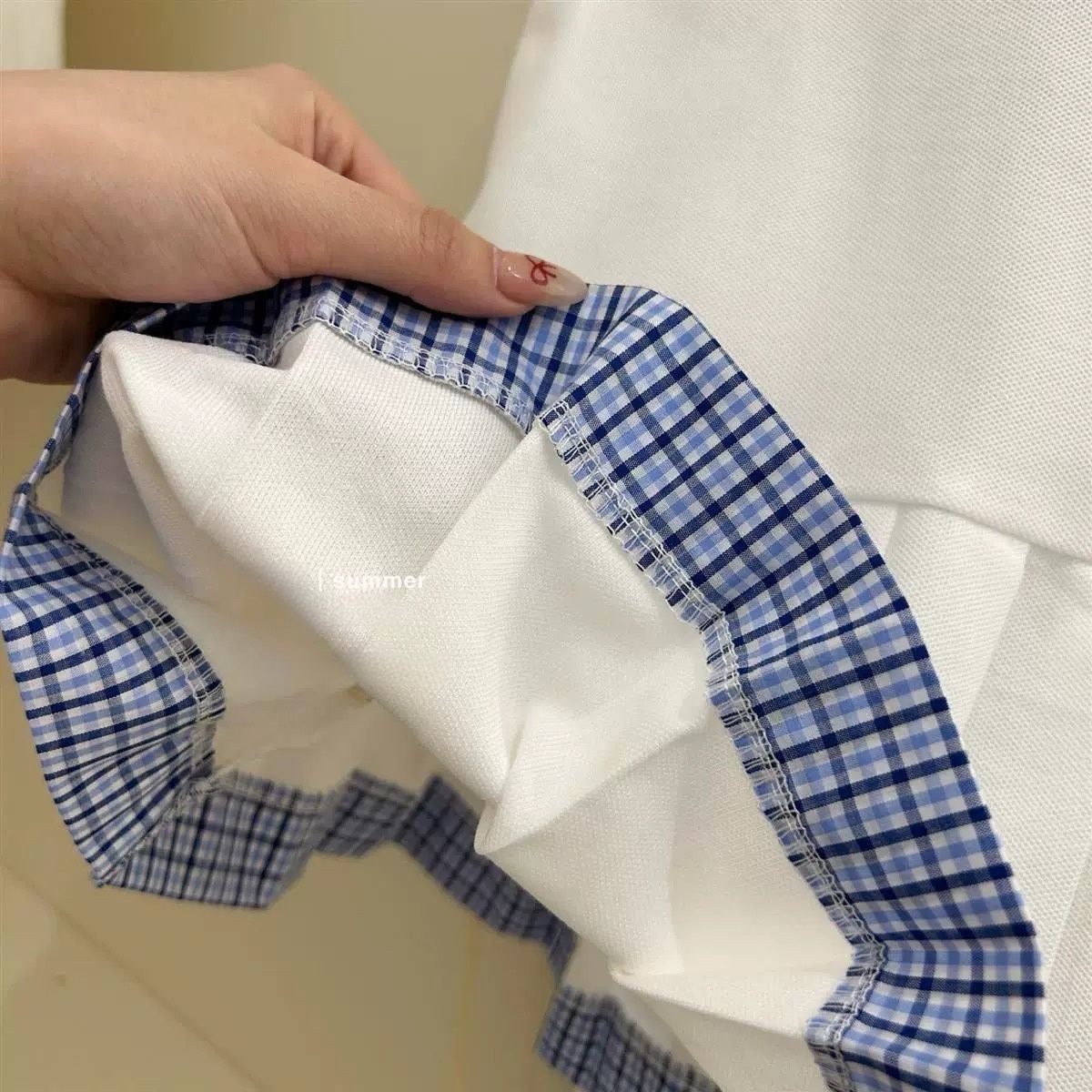 • 2038 체크무늬 스플라이스 폴로 스커트 [화이트]