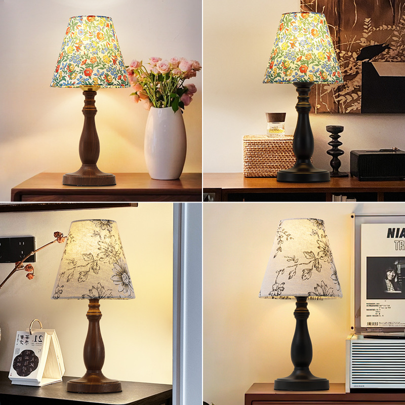 2025 새로운 미국 복고풍 스타일 야간 조명 침실 머리맡 램프 고급 프랑스 로맨틱 꽃 분위기 테이블 램프스토어 가기