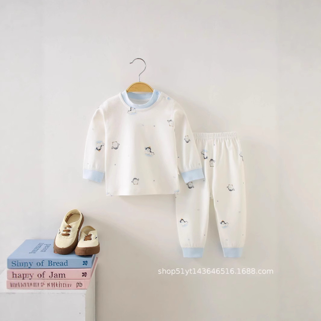 아기 순면 스플릿 숄더 버튼 슈트 아기 카테고리 A 가을 옷과 긴 바지 신생아 봄, 가을 옷