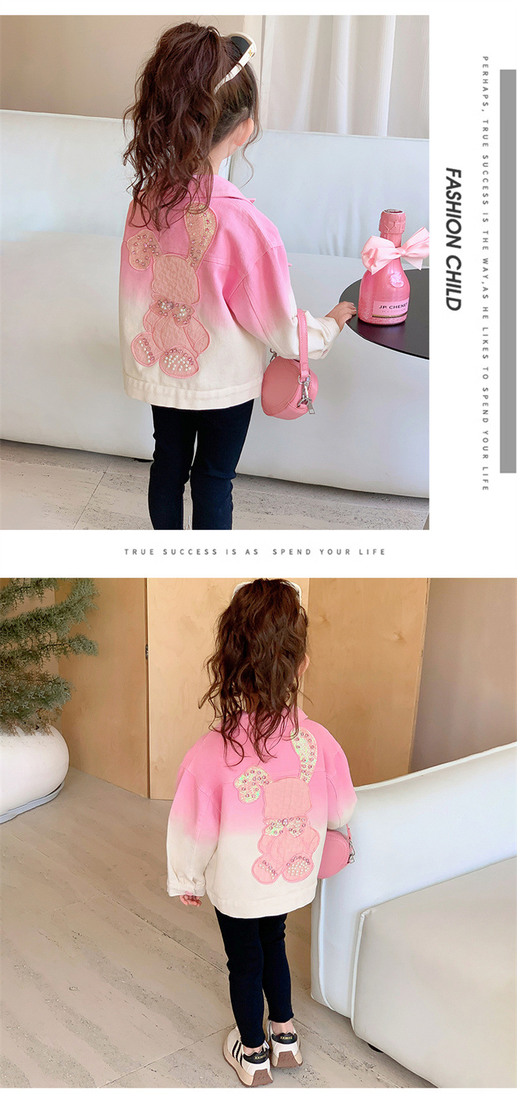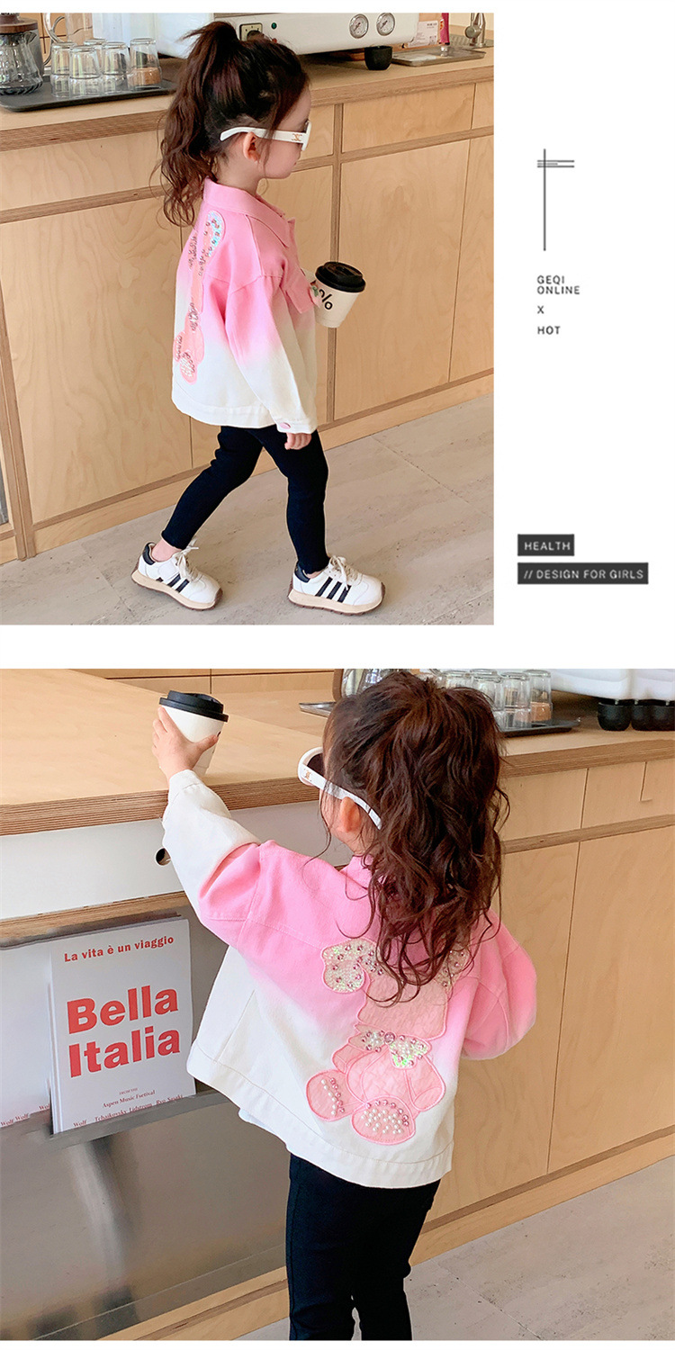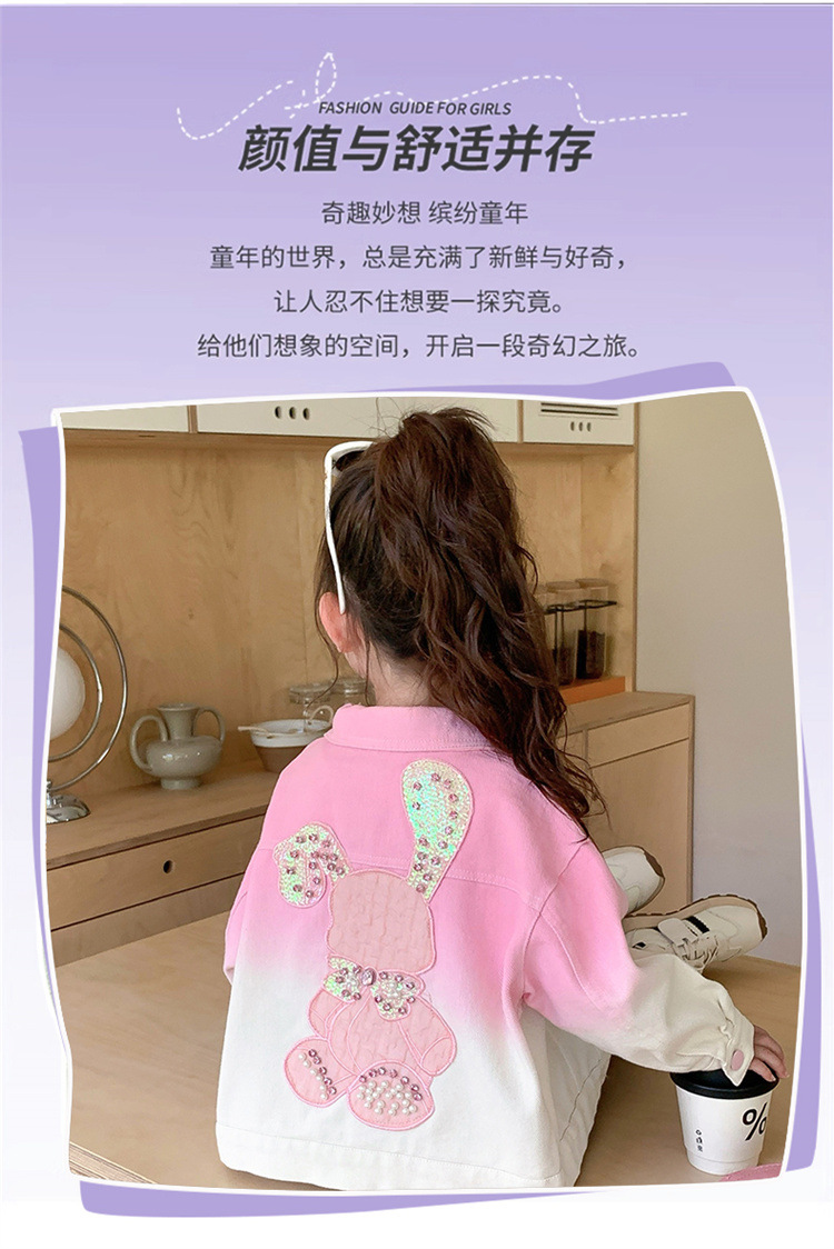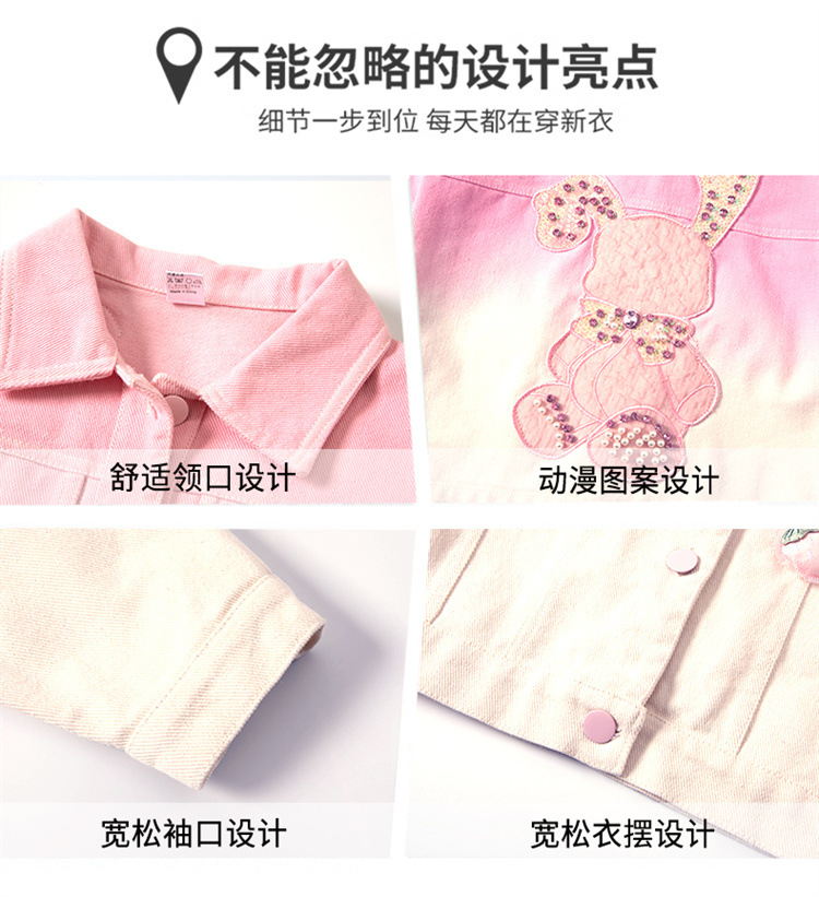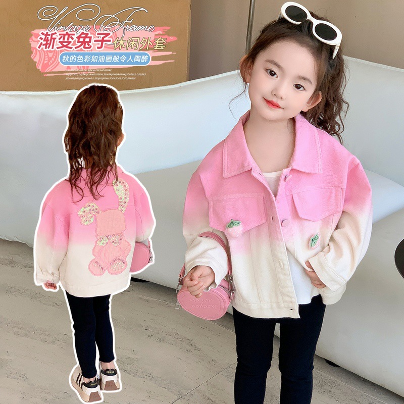 여자 딸기 그라디언트 워시 코튼 자켓 가을 새로운 어린이 만화 토끼 타이 염색 자켓 가을 의류 도매 트렌드스토어 가기
