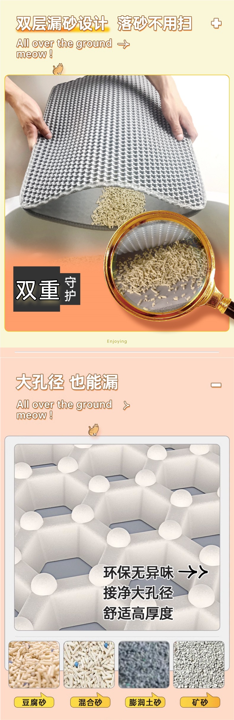 고양이 쓰레기 매트, 고양이 쓰레기통, 물 튀김 방지 매트, 이중 필터, 누출 방지 및 모래 제어 매트, 고양이 애완 동물 용품스토어 가기