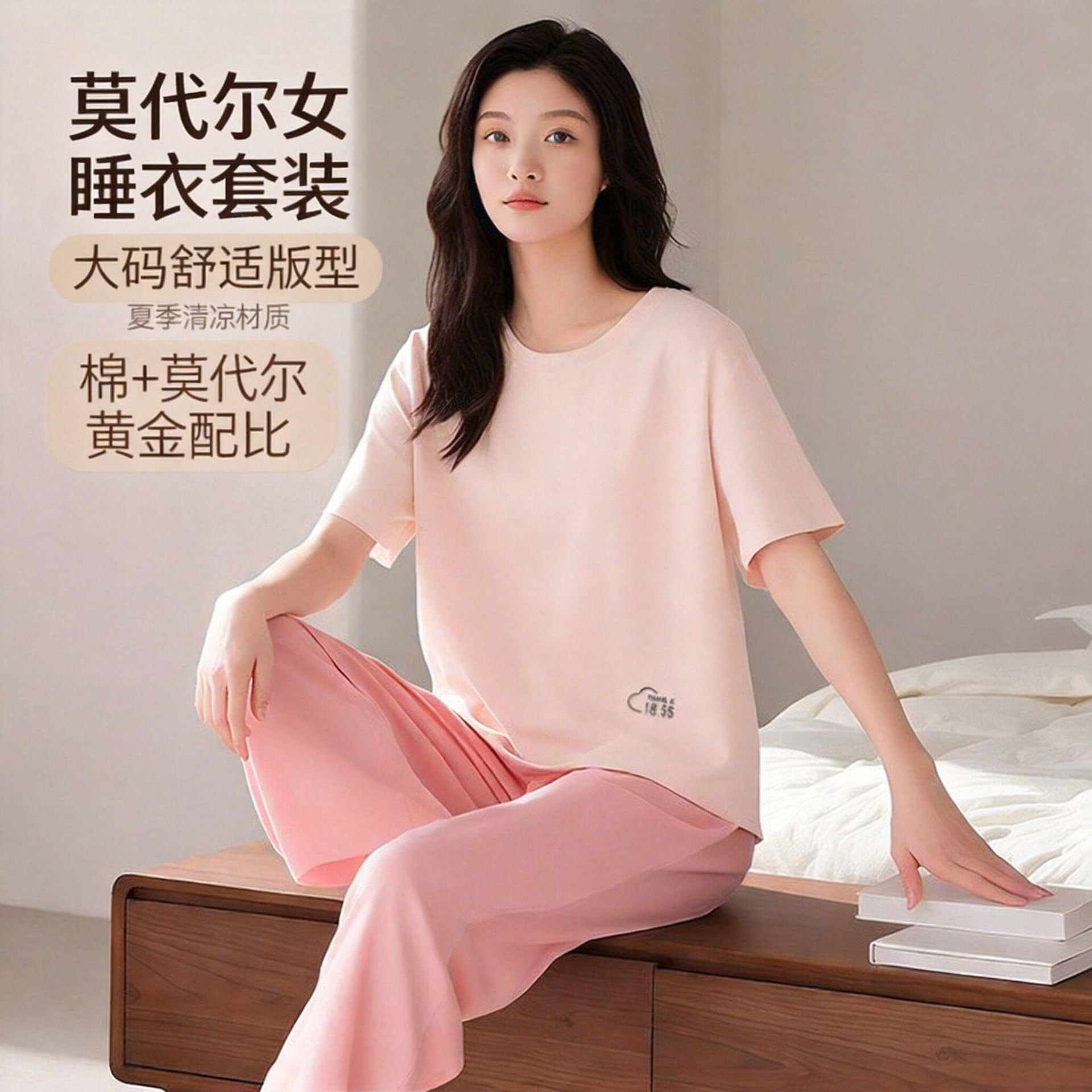 모달 커플 잠옷 여성용 여름 반팔 얇은 캐주얼 홈웨어 세트 루즈핏 대형 투피스 세트 남성용