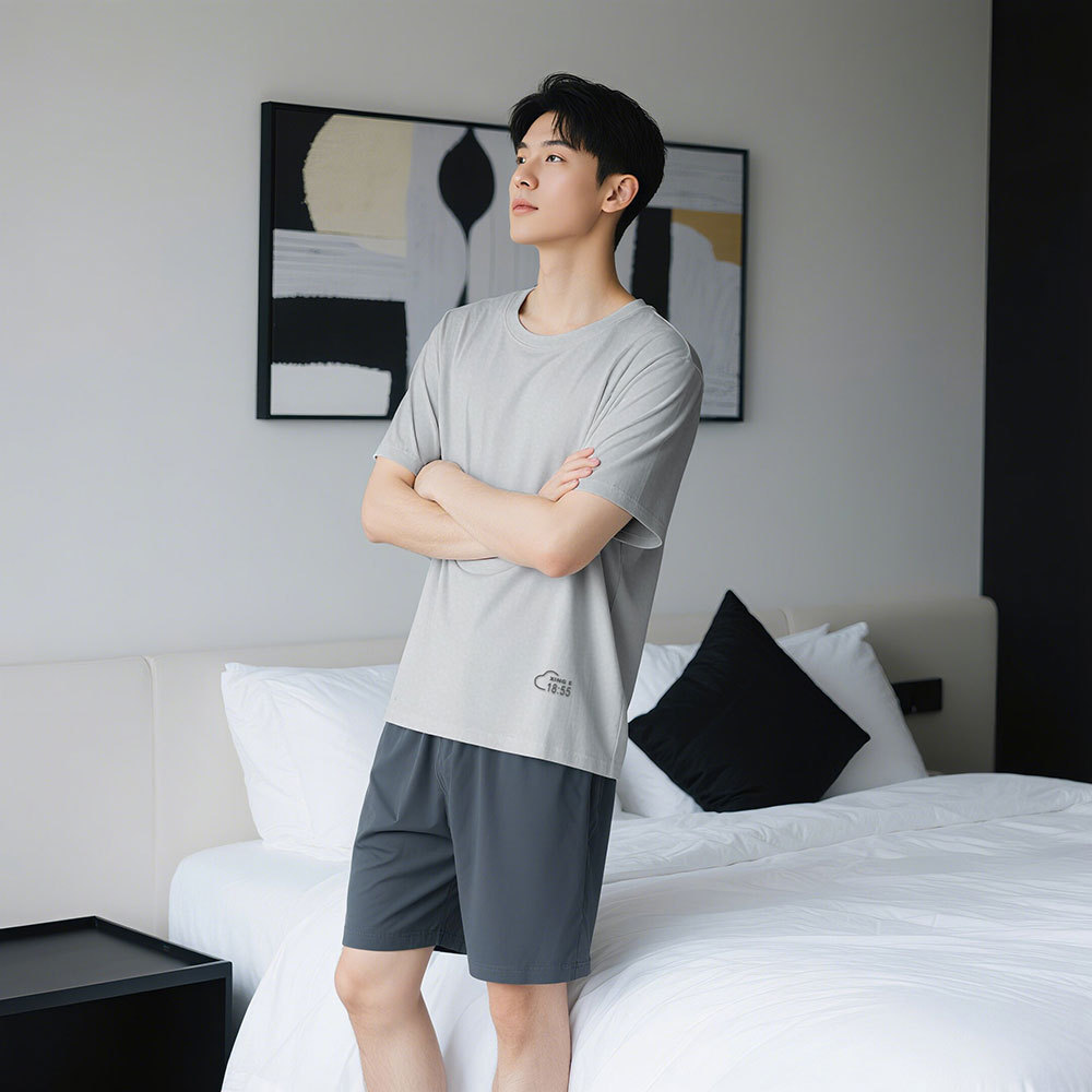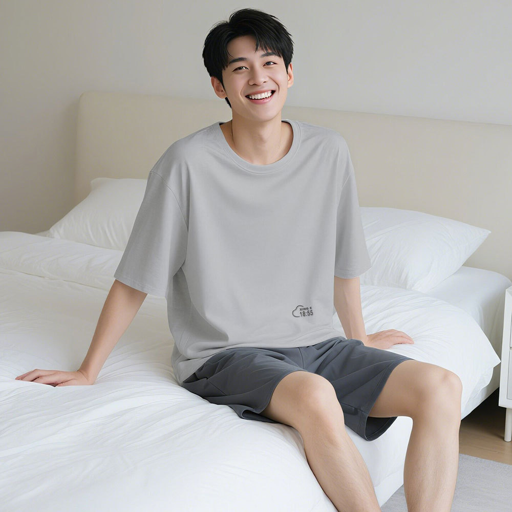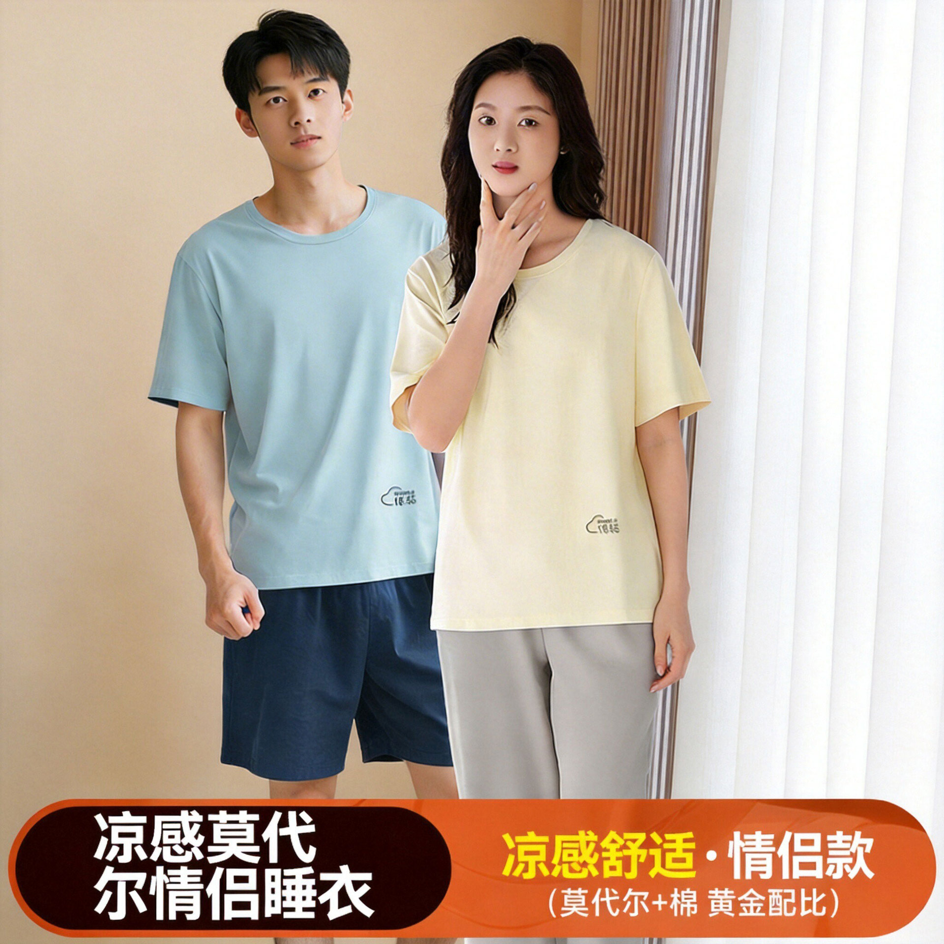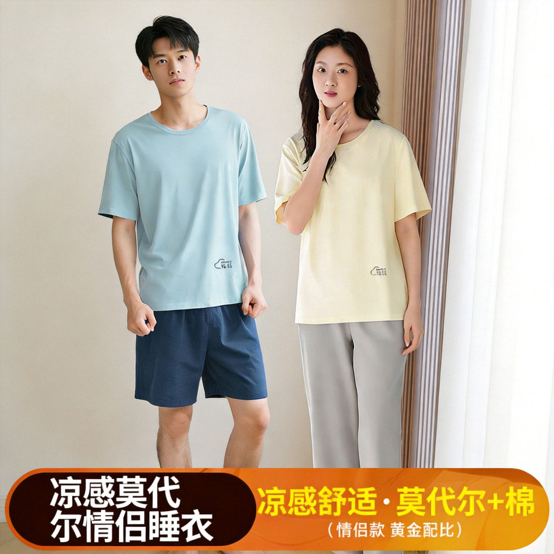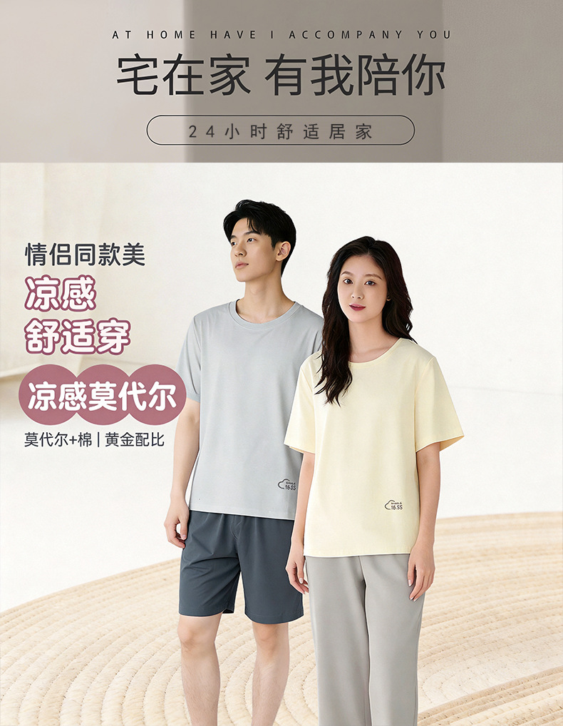 모달 커플 잠옷 여성용 여름 반팔 얇은 캐주얼 홈웨어 세트 루즈핏 대형 투피스 세트 남성용스토어 가기