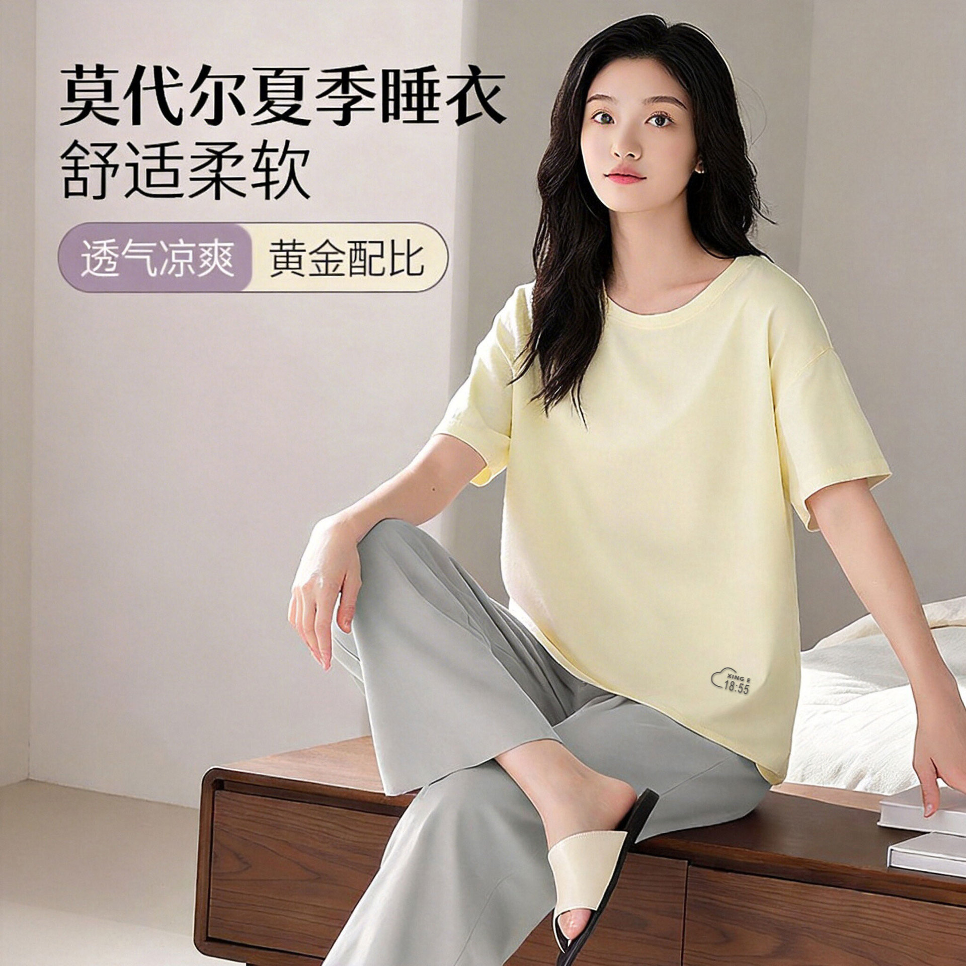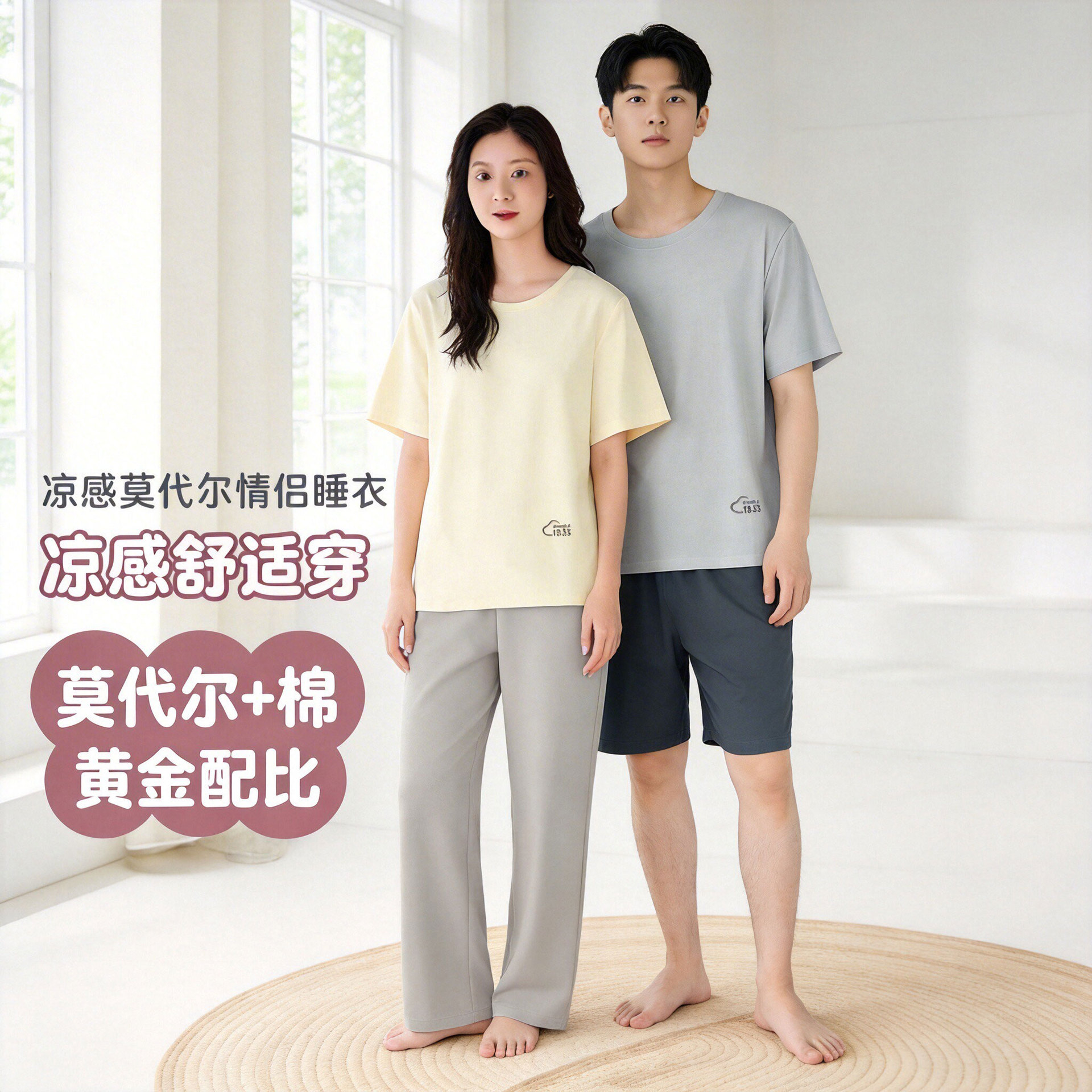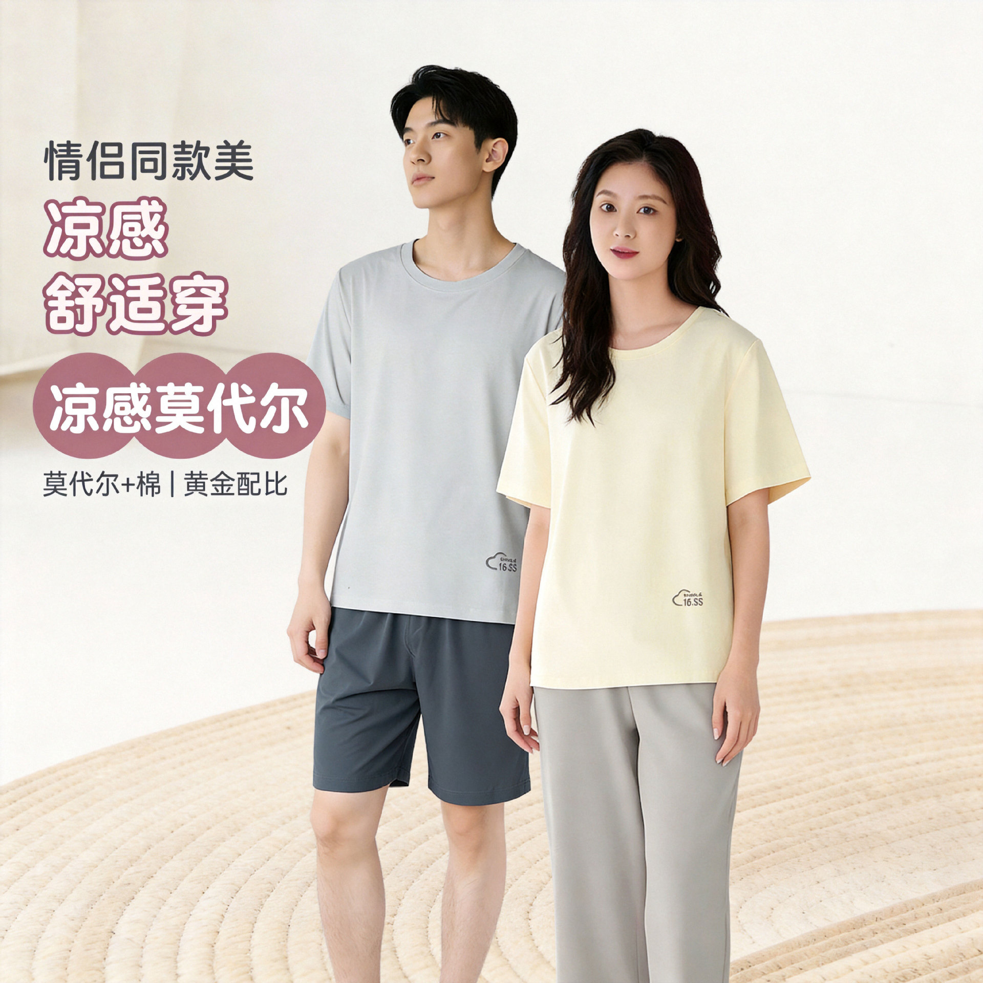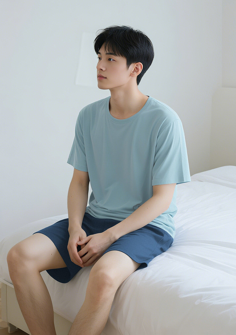 모달 커플 잠옷 여성용 여름 반팔 얇은 캐주얼 홈웨어 세트 루즈핏 대형 투피스 세트 남성용스토어 가기