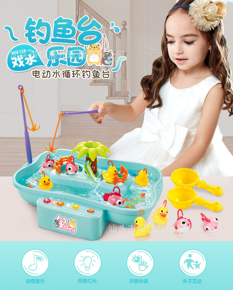 물놀이를 즐기는 아기 낚시 장난감, 어린이용 대형 전동 회전 음악 및 조명 기능, 낚시 연못, 부모-자식 상호 작용스토어 가기