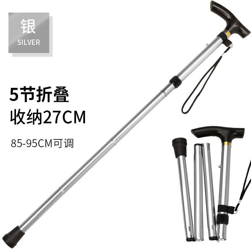 • 알루미늄 합금 접이식 목발 5섹션 실버