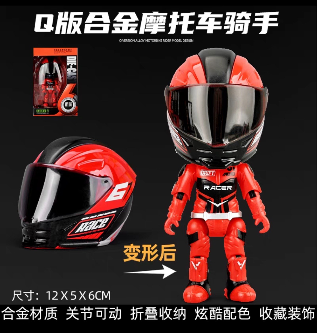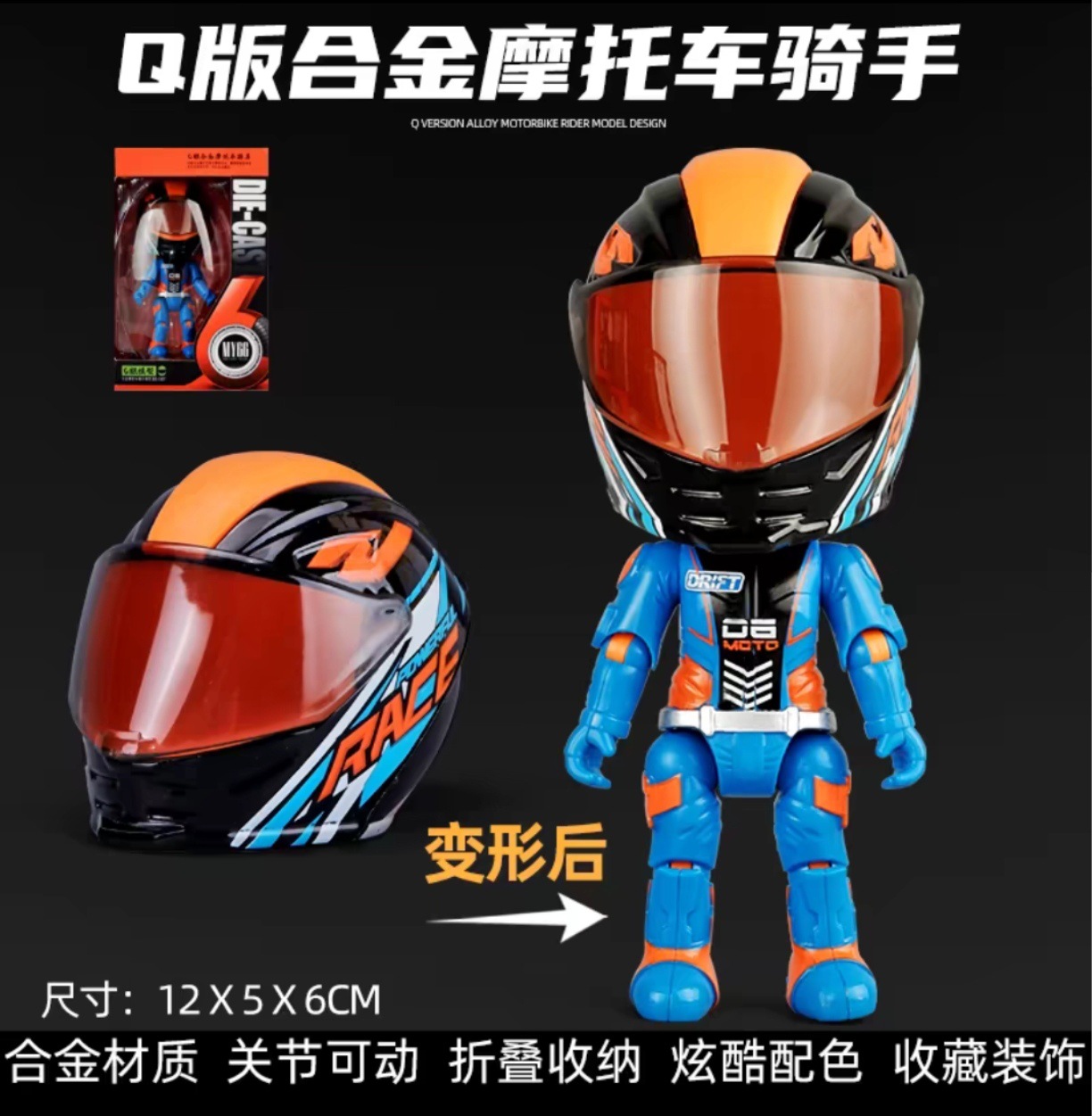 시뮬레이션 오토바이 라이더 합금 변형 인형 헬멧 인형 손으로 만든 데스크탑 장식 모델 어린이 선물 남성용