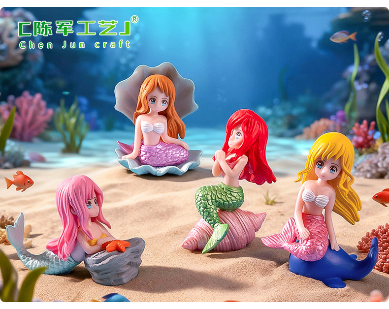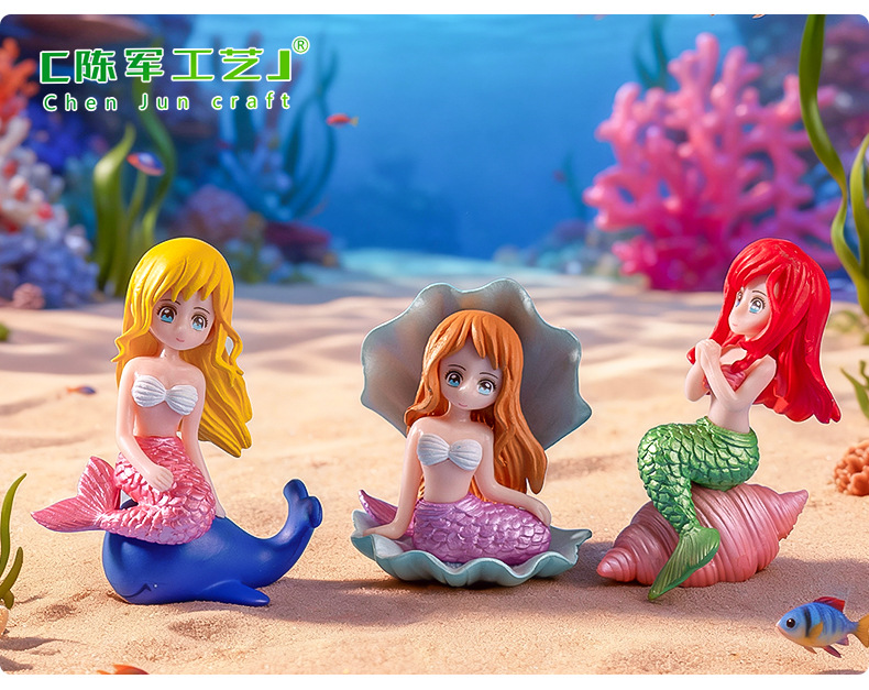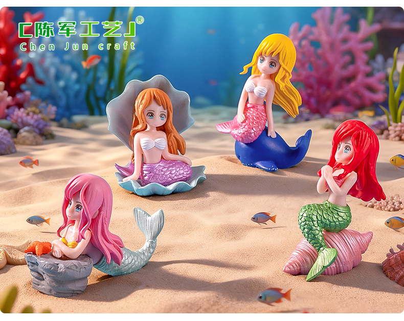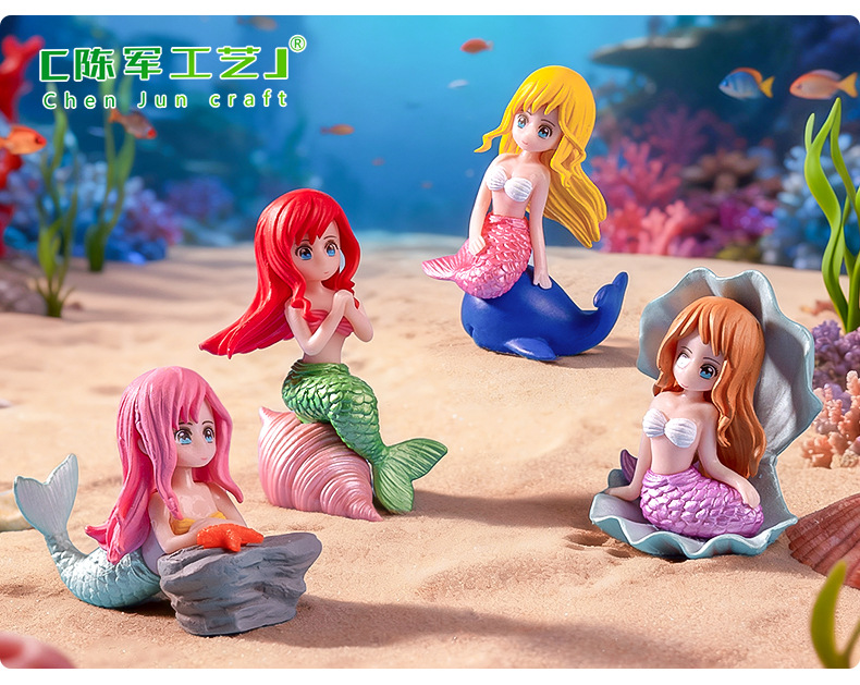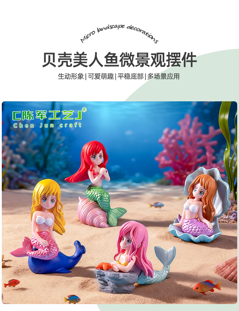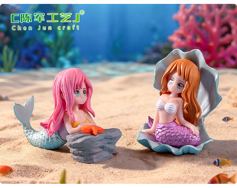 쉘 인어 마이크로 풍경 diy 수조 작은 장식품 크리 에이 티브 만화 인형 pvc 해양 조경 장식 액세서리