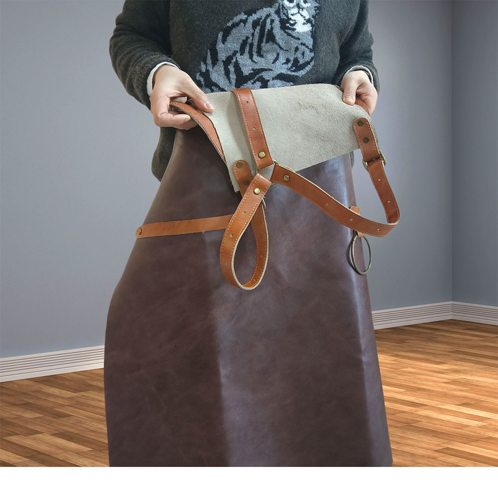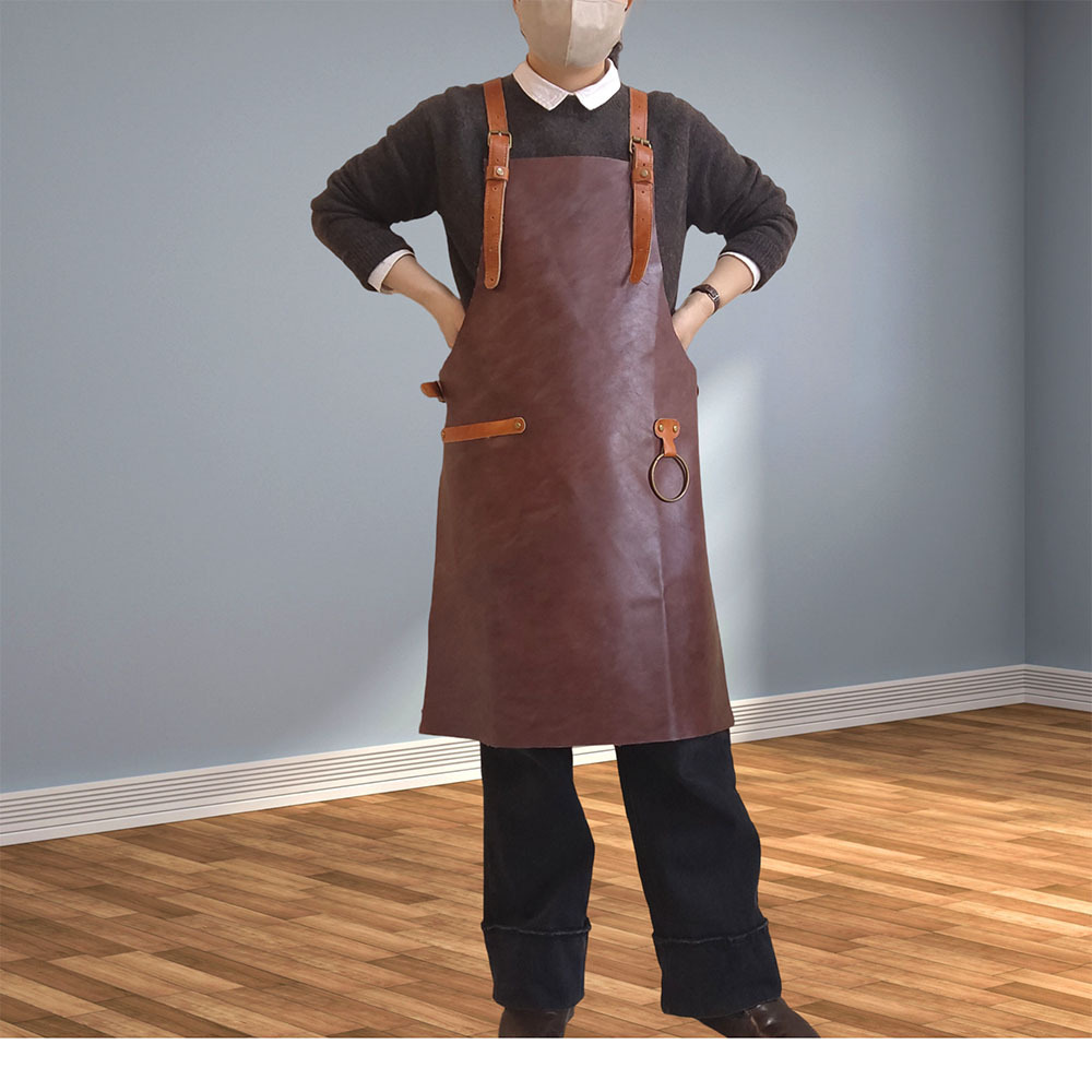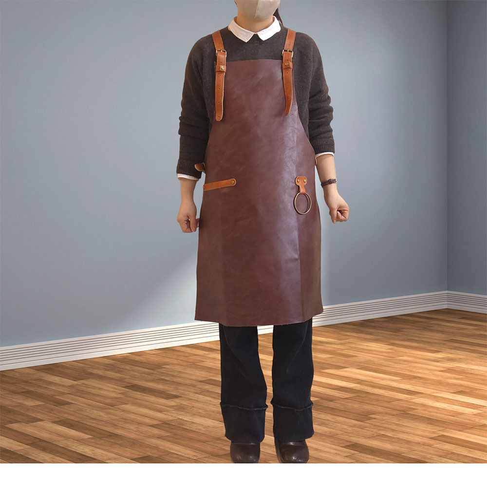 맞춤형 로고가 있는 1층 천연 가죽 앞치마 케이터링 밀크티 커피숍 호텔 레스토랑 방수 작업복