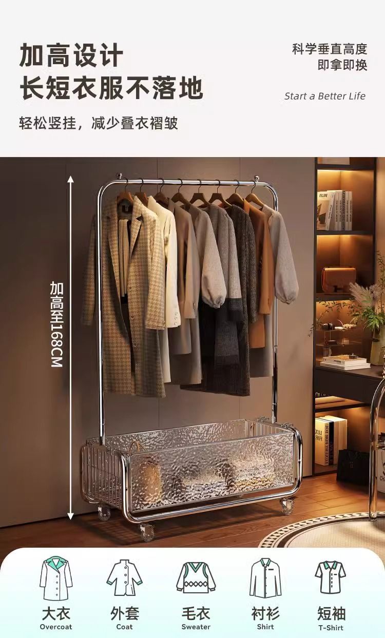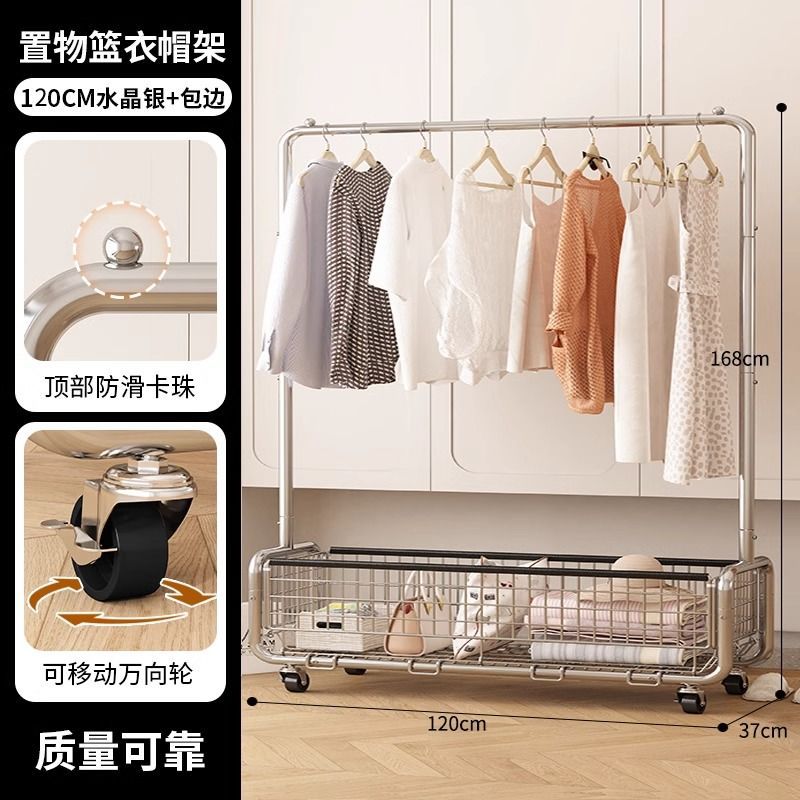 인터넷 연예인 이동식 옷걸이 바닥 침실 홈 실내 옷 보관 랙 코트 랙 거실 발코니스토어 가기