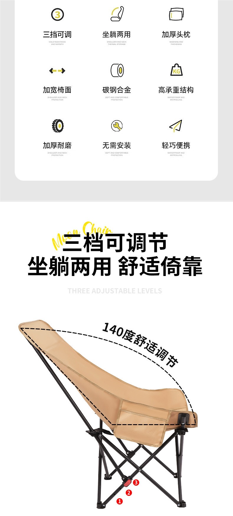낚시 의자, 등받이 조절 가능, 레이저 의자, 안락 의자, 앉을 수 있는 의자, 높은 등받이 야외 접이식 의자, Moon 3단