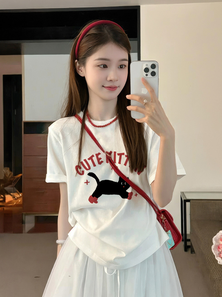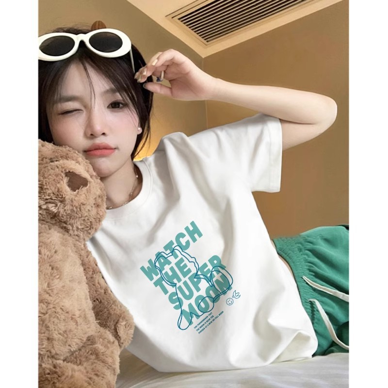 여름 신작 반팔 티셔츠 여성 한국어 버전 프린트 루즈 학생 탑 바닥 셔츠 트렌드스토어 가기