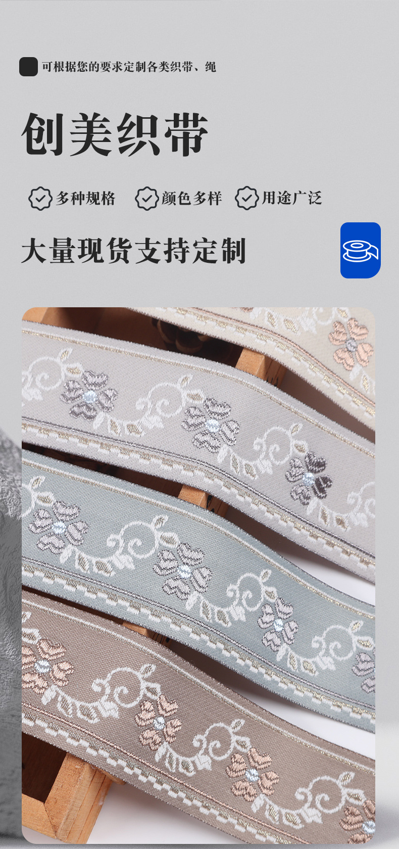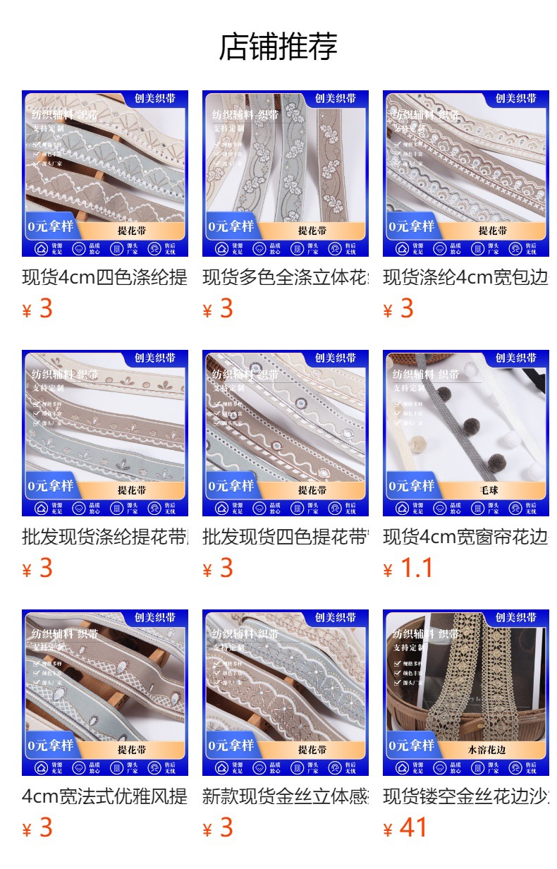공장 현물 도매 가격 전체 폴리 에스터 실버 실크 자카드 벨트 민족 스타일 의류 커튼 섬유 액세서리 가장자리 벨트스토어 가기
