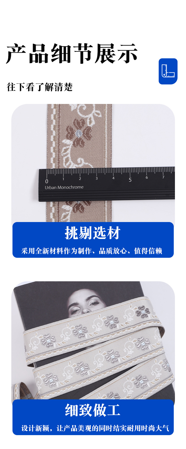 공장 현물 도매 가격 전체 폴리 에스터 실버 실크 자카드 벨트 민족 스타일 의류 커튼 섬유 액세서리 가장자리 벨트