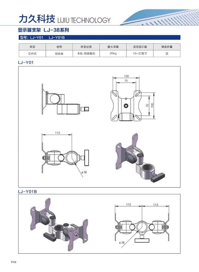LJ-38 액세서리 모니터 브래킷 라이저 벽걸이 브래킷 데스크탑 키보드 마우스 트레이 고정 장치 잠금 구멍 부품