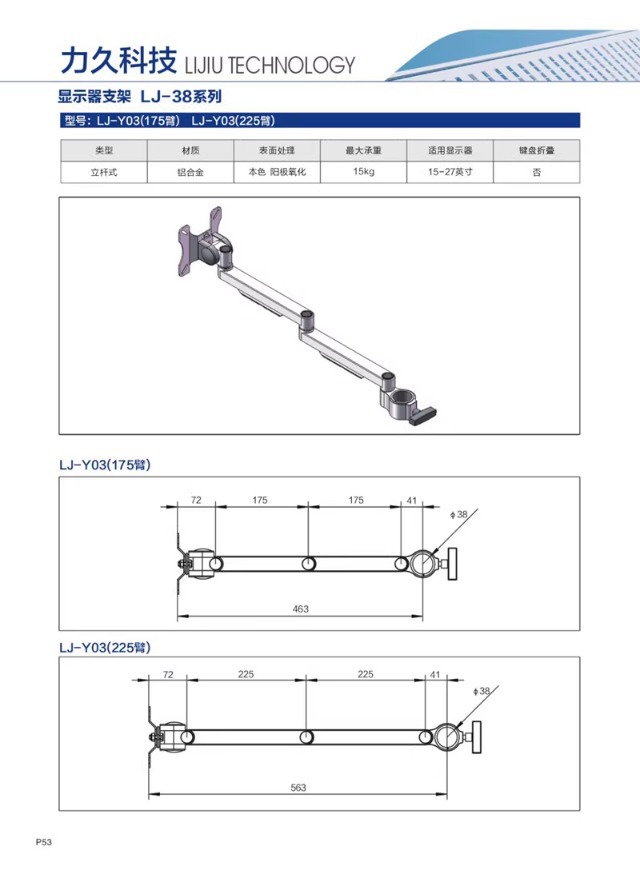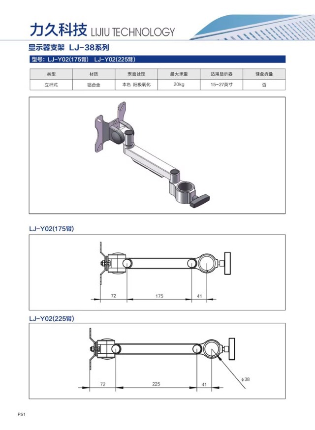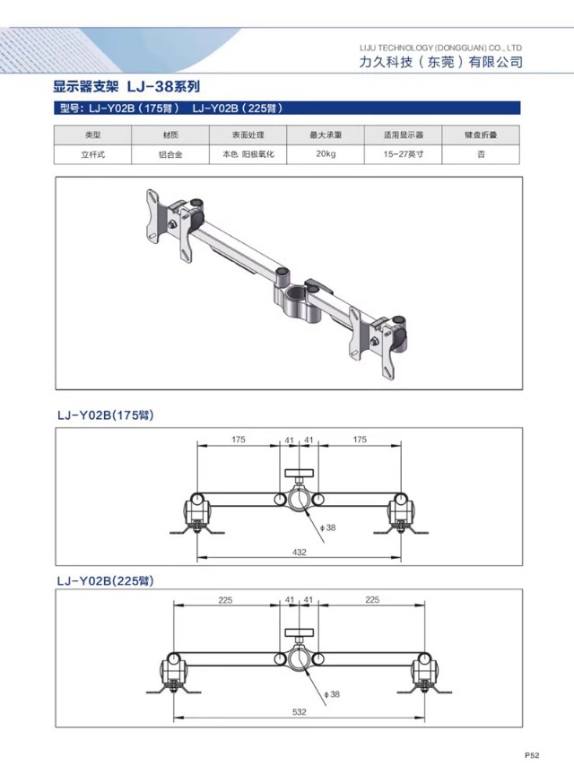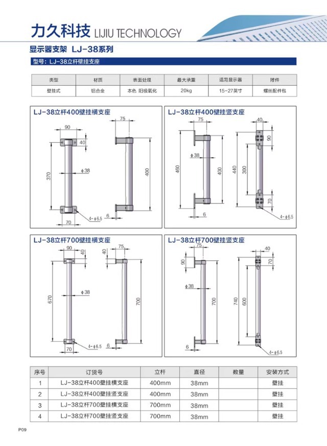 • LJ-38 폴 700 벽걸이형 수평 지지대