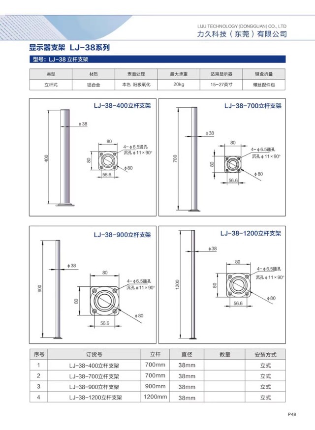 • LJ-38 폴 700 벽걸이형 수직 지지대