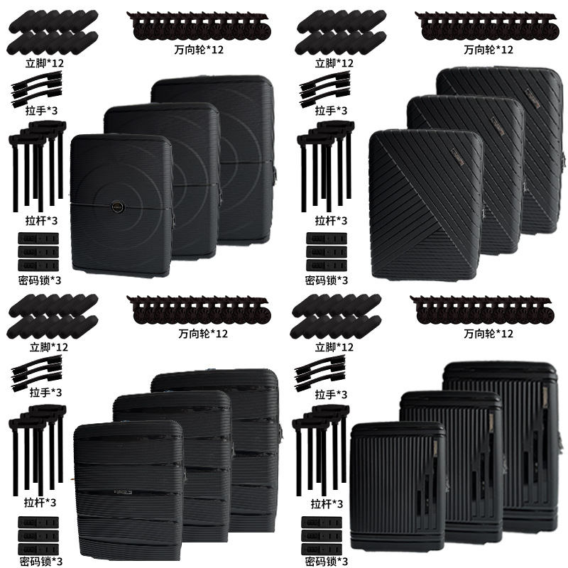 국경 간 도매 수하물 반제품 12피스 비즈니스 트롤리 케이스 범용 휠 자동 PP 가방 사용자 정의