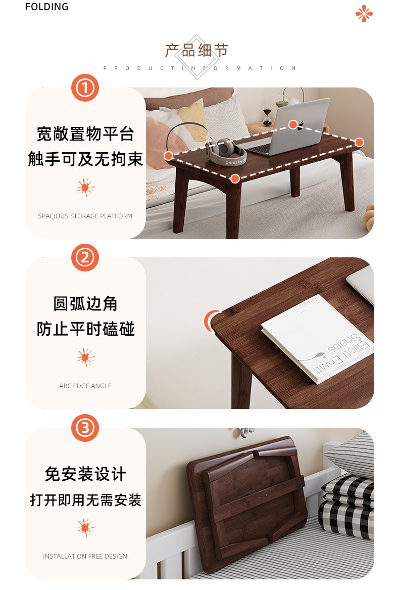 • 설치 불필요 - 로즈우드 컬러 접이식 테이블 [길이 80*가로 40*높이 26]