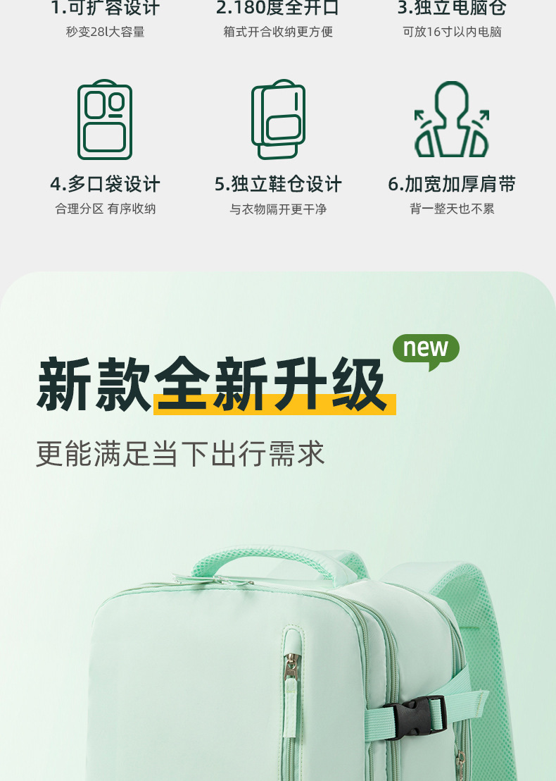 여행 확장 배낭 여성용 다기능 배낭 남성용 독립 신발 수납 공간 건식 및 습식 분리 단거리 출장 여행 가방