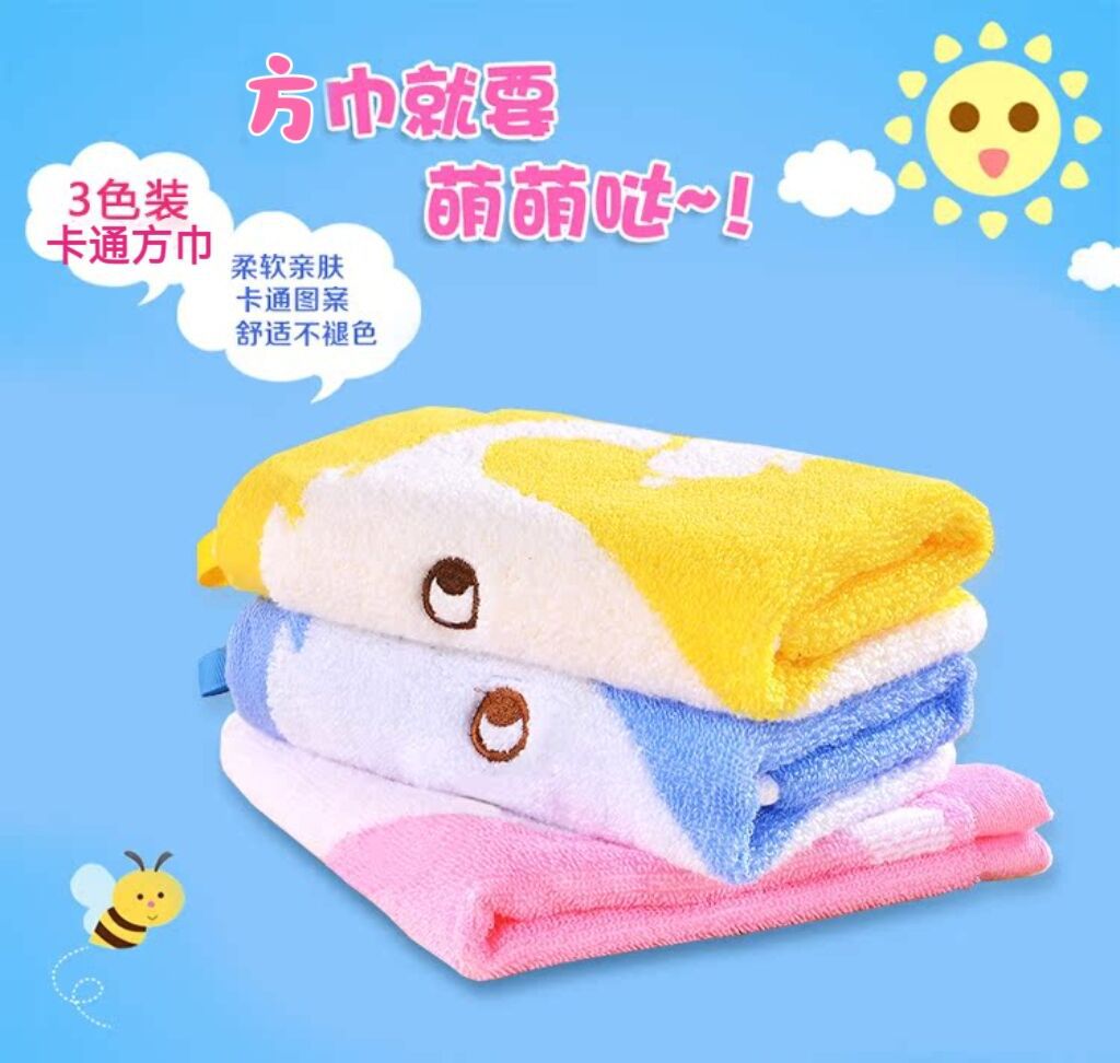 Jinmiao 작은 수건 어린이 세안 가정용 성인 아기 대형 사각형 수건 유치원 만화 부드러운 흡수성 타액 수건스토어 가기