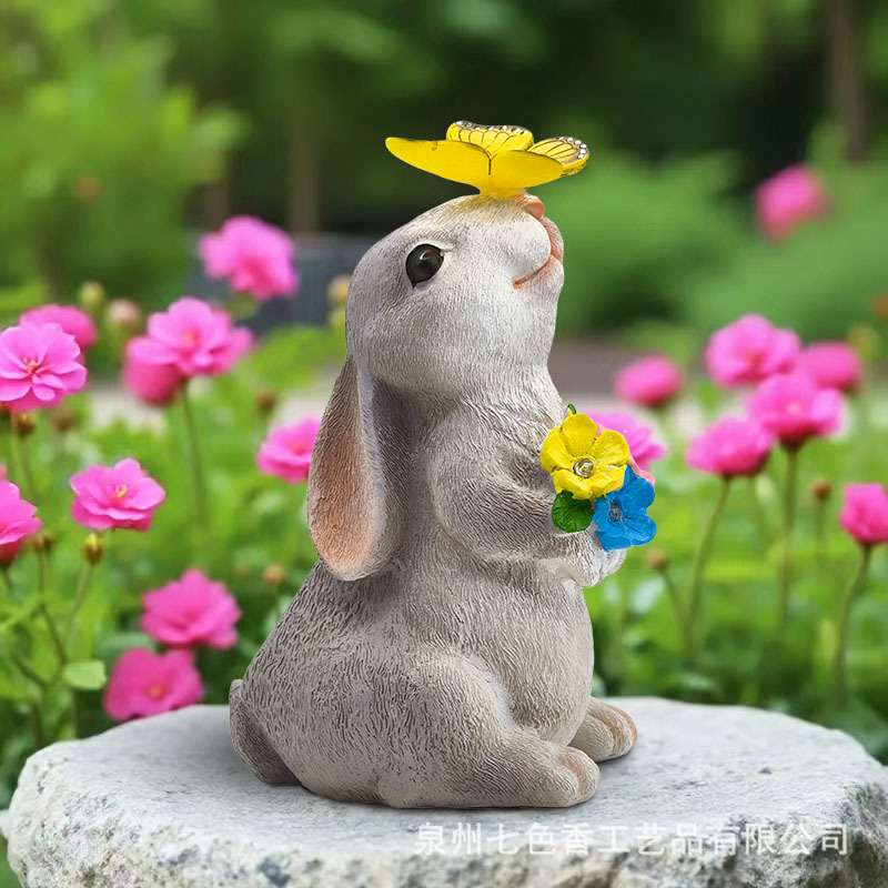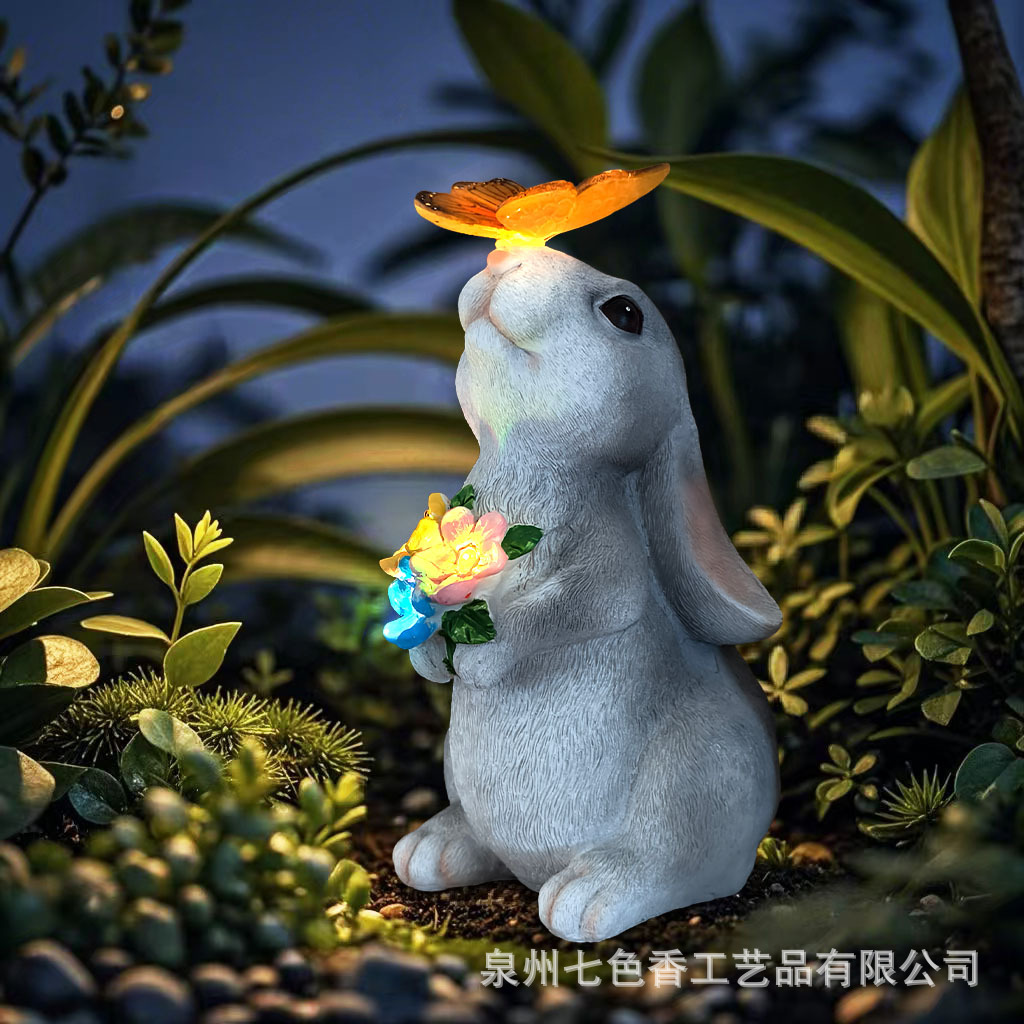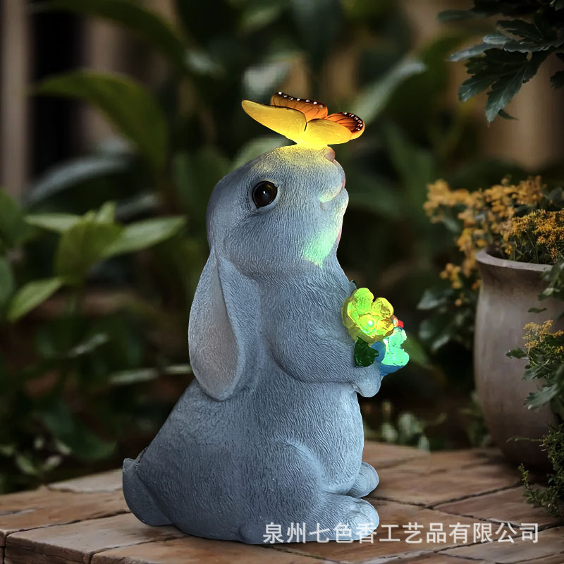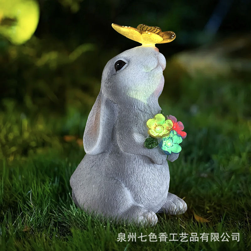 야외 태양 빛 시뮬레이션 토끼 동상 빛 크리 에이 티브 수지 공예 장식품 안뜰 장식 램프 국경 간 뜨거운 판매