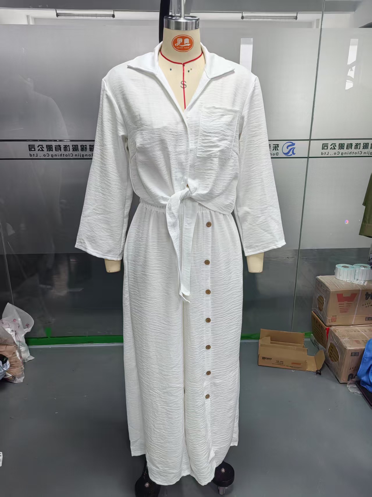 2025 유럽 및 미국 국경 간 Amazon 독립 스테이션 여성용 긴 밑단 단추 솔리드 컬러 긴팔 탑 포켓 슈트스토어 가기