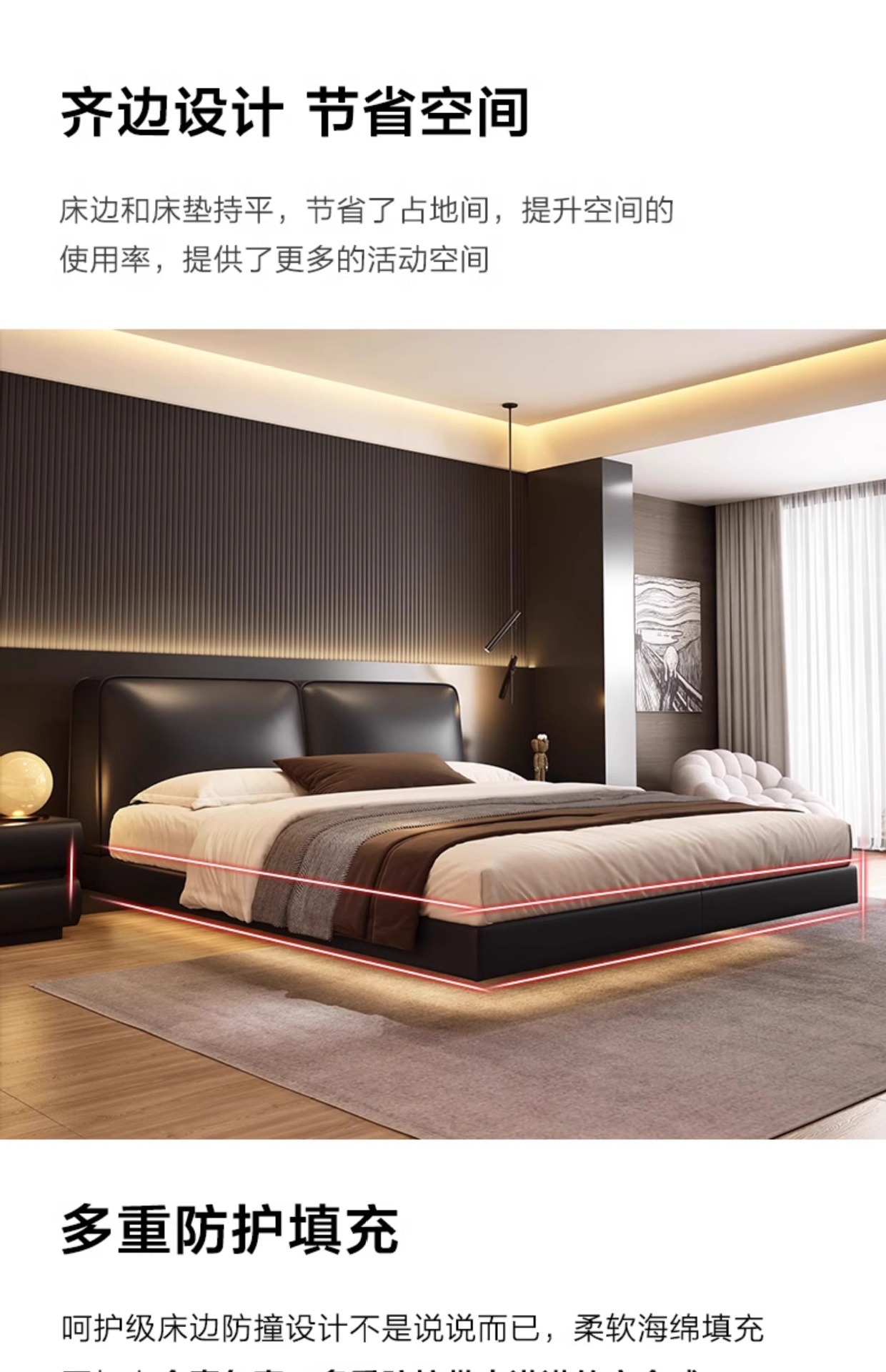 • 가죽 싱글 침대 + 침대 옆 테이블*1