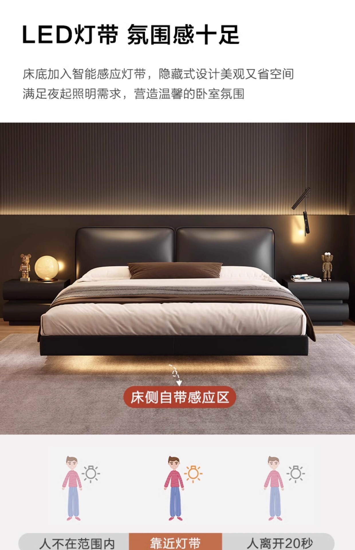 • 가죽 싱글 침대 + 침대 옆 테이블*2