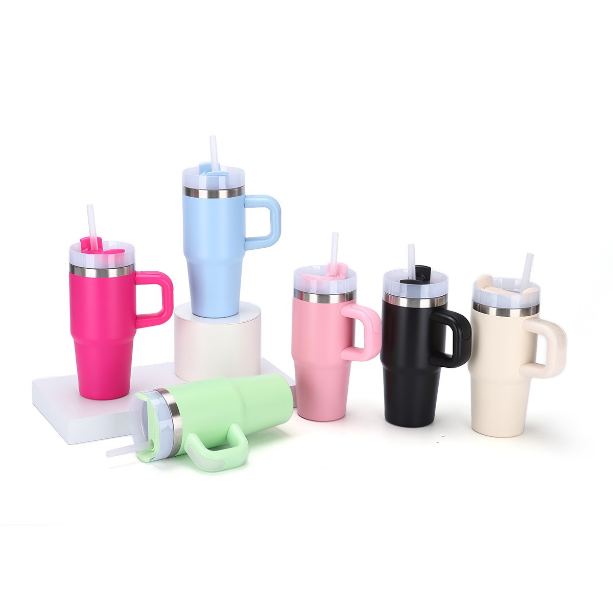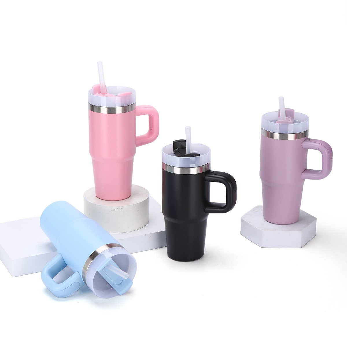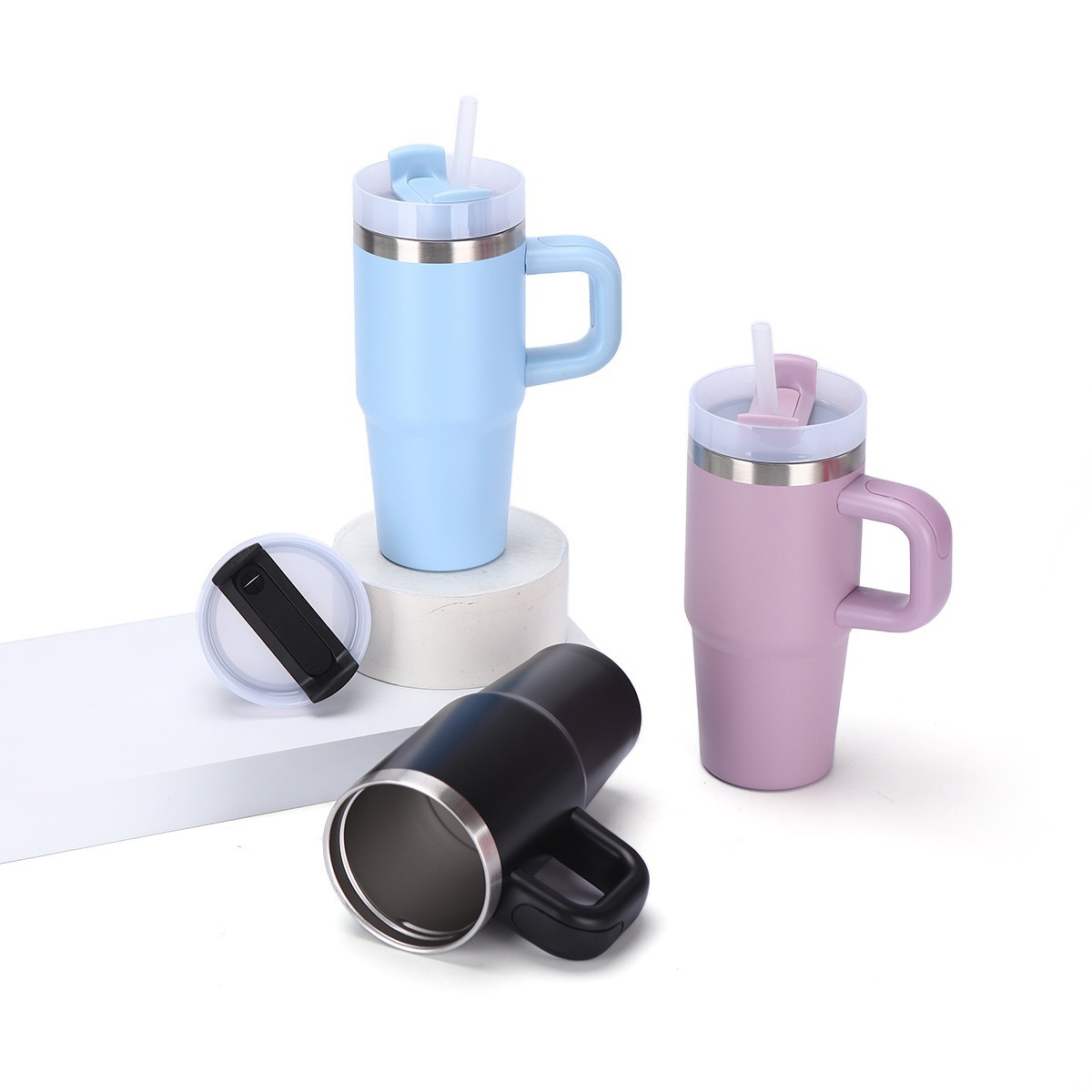 국경 간 14oz 핸들 자동차 컵 304 스테인레스 스틸 이중층 절연 컵 자동차 휴대용 밀짚 얼음 컵
