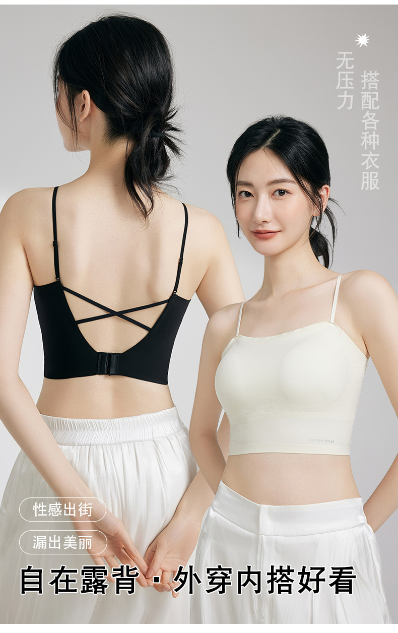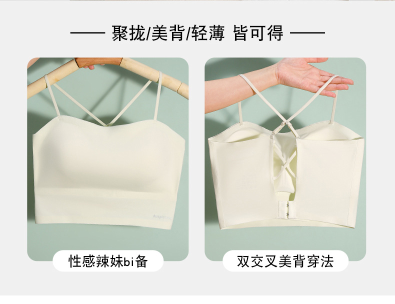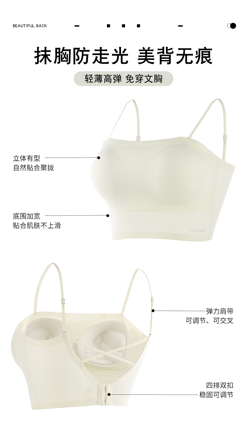 가슴이 작은 여성용 오리지널 튜브탑 브라, 푸쉬업, 측면 수축, 노출 방지, 아름다운 등, 캐미솔 스타일 심리스 브라