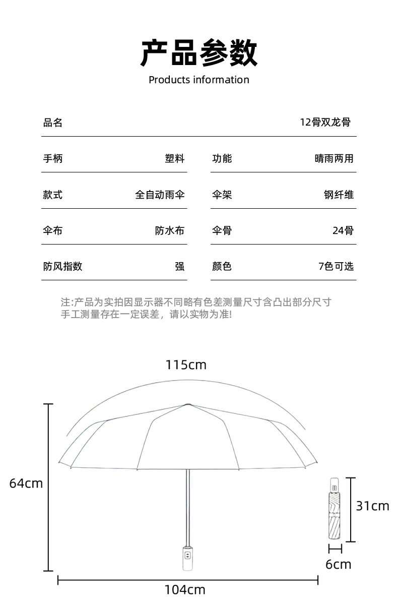 인기있는 접이식 24본 전자동 우산 12본 더블본 비닐 비 또는 빛 차양 겸용 우산 광고 우산