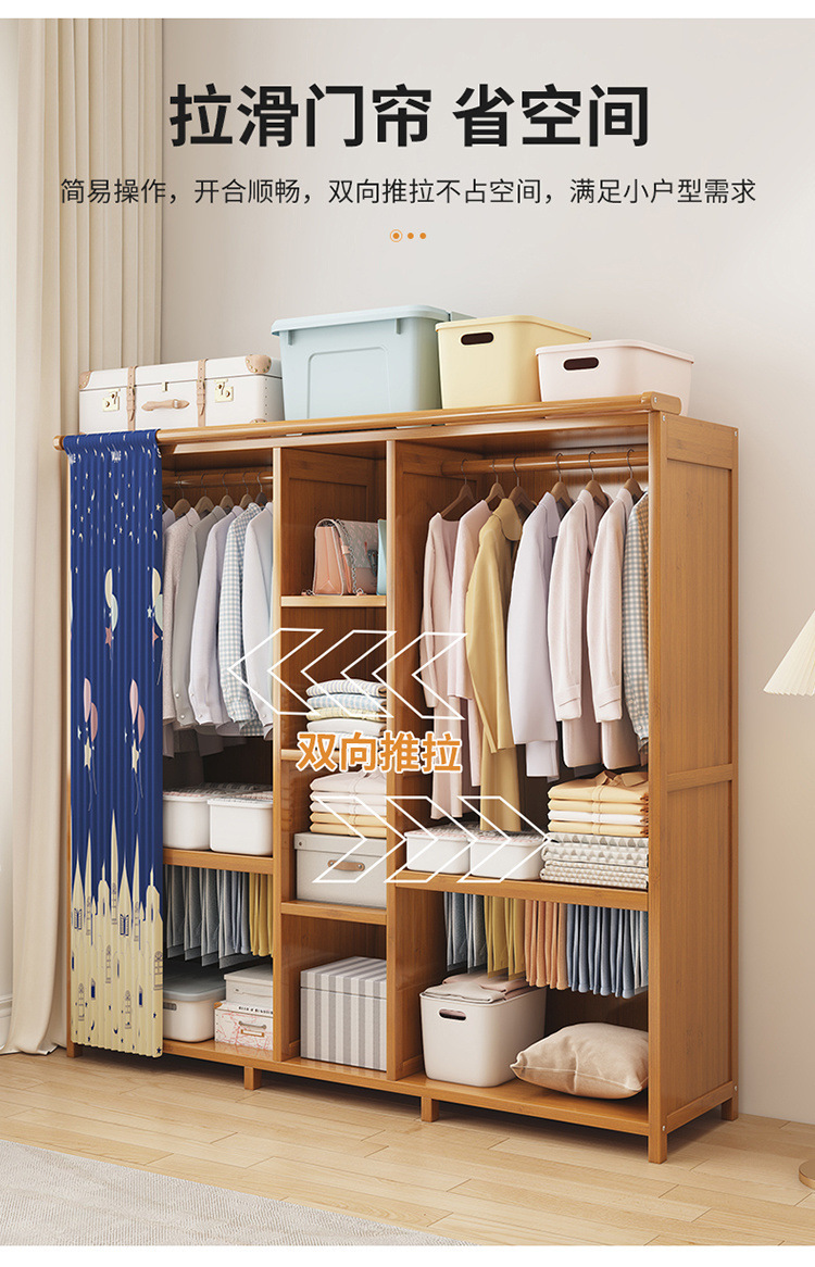 렌탈룸용 커튼이 있는 특가 다기능 옷장, 방진, 간편하고 경제적인 옷장, 대용량 가정용 옷걸이