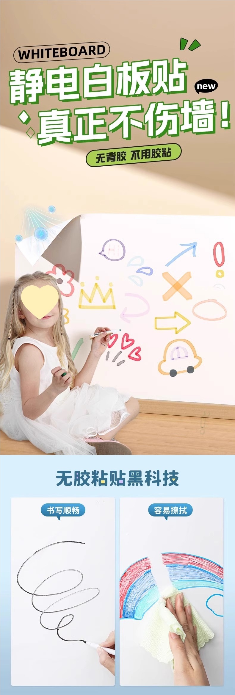 벽 제거 스티커 쓰기 보드 낙서 어린이 그림 보드 작은 칠판 지울 수있는 화이트 보드 벽 스티커 가정용 정전기