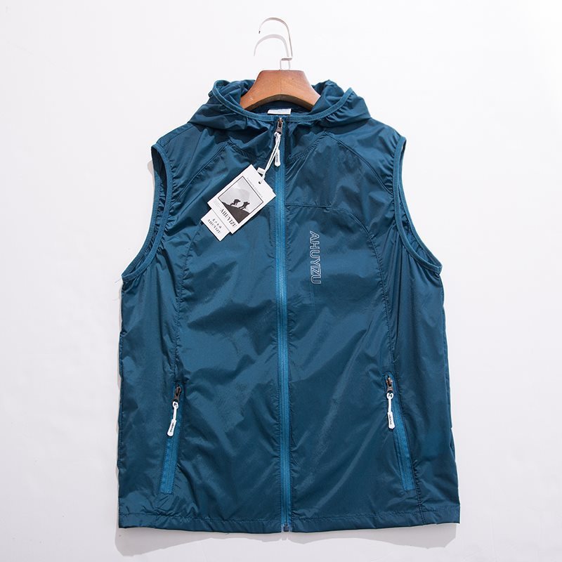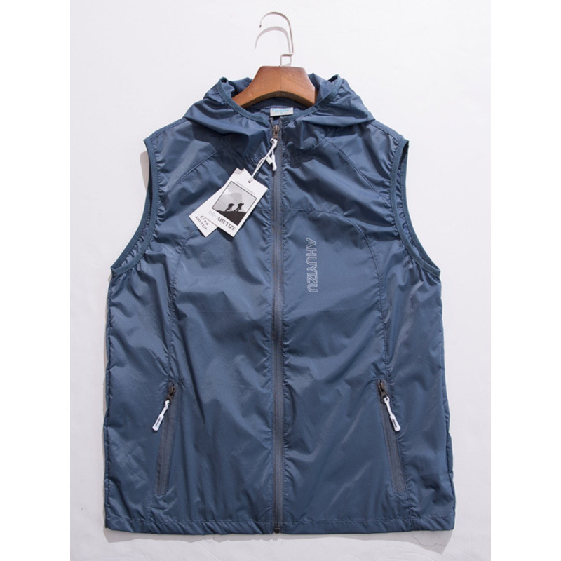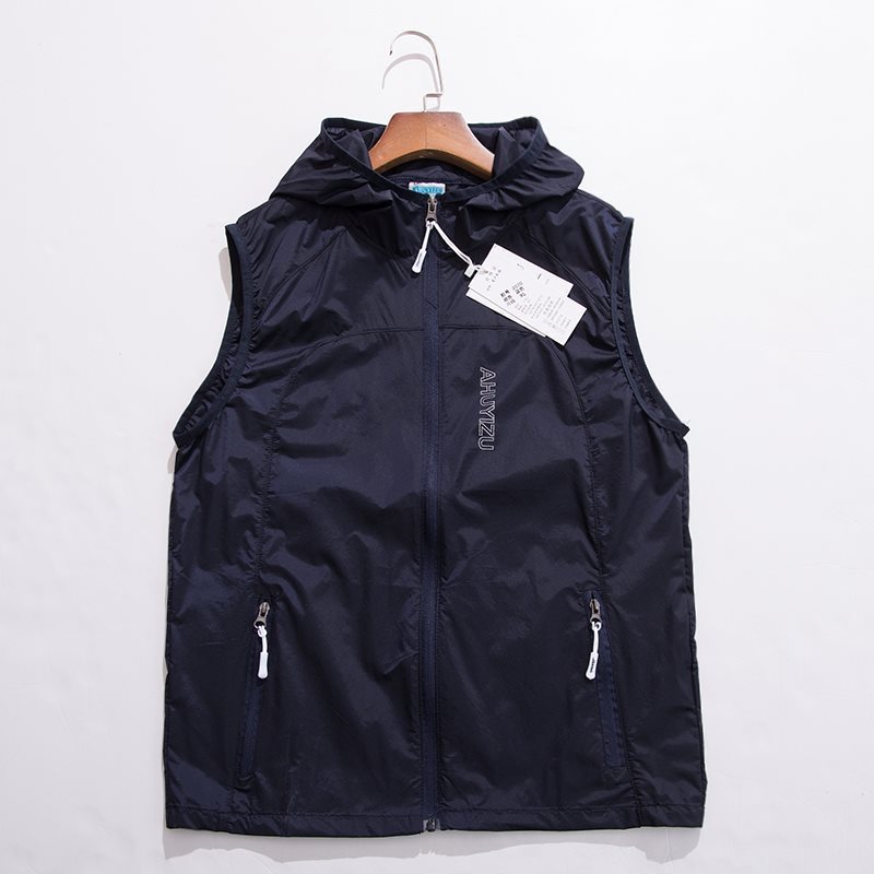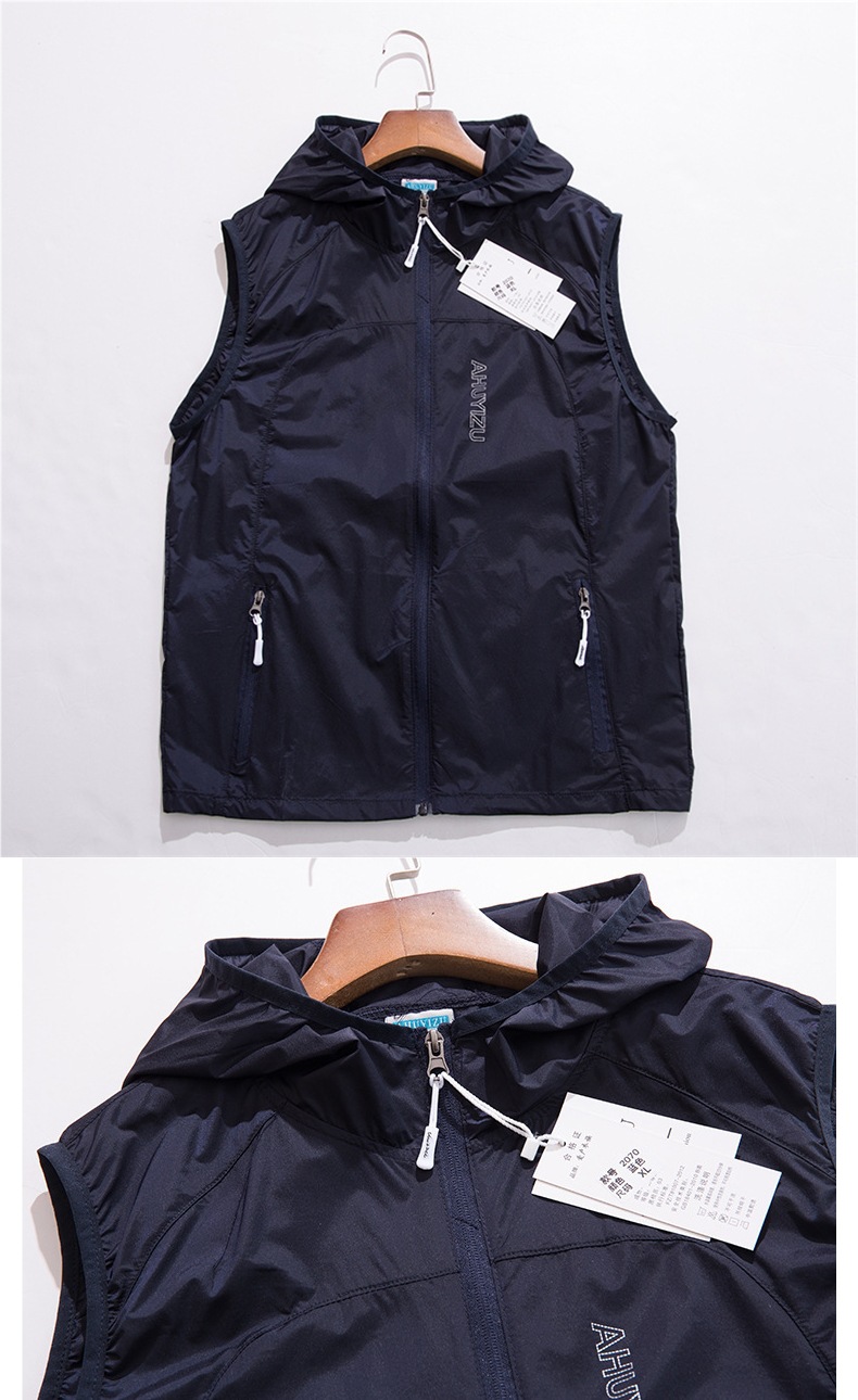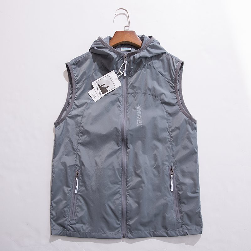 봄과 여름 야외 스포츠 속건성 조끼 남성용 후드 대형 통기성 땀 흡수 달리기 등산 태양 보호 조끼