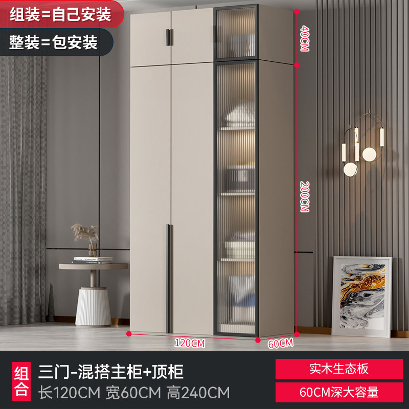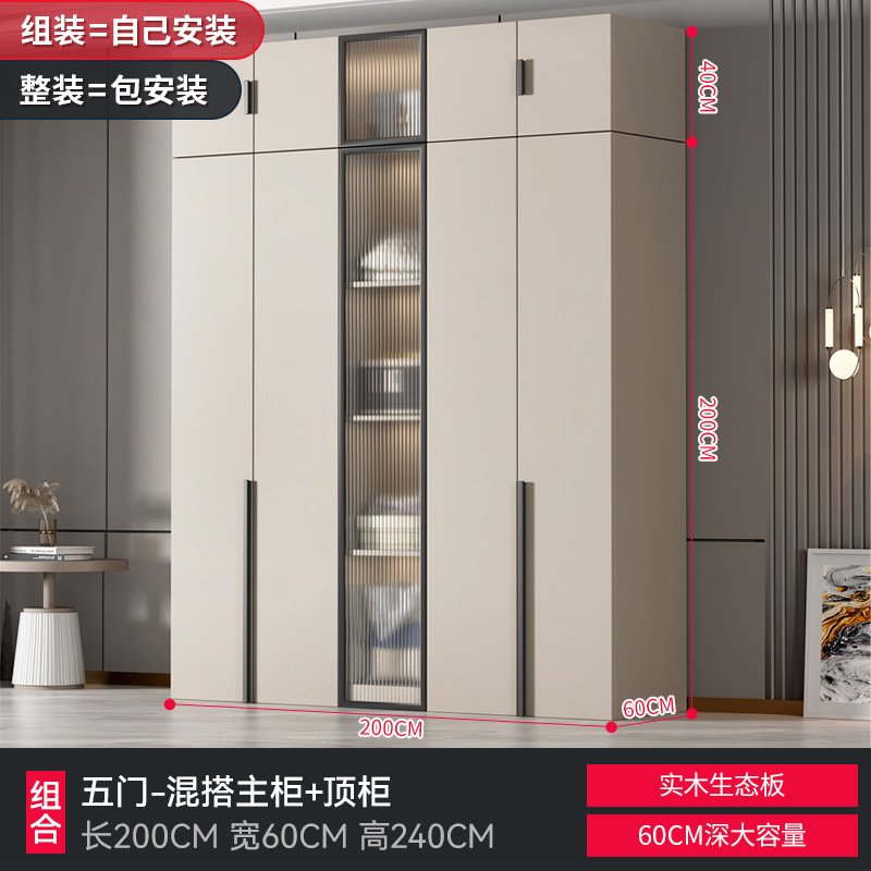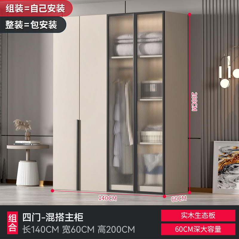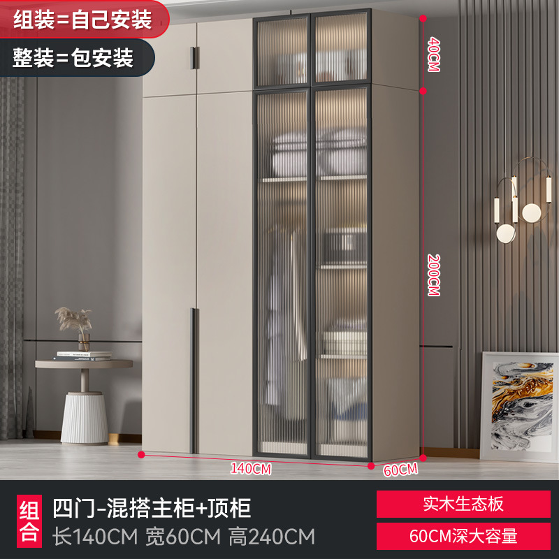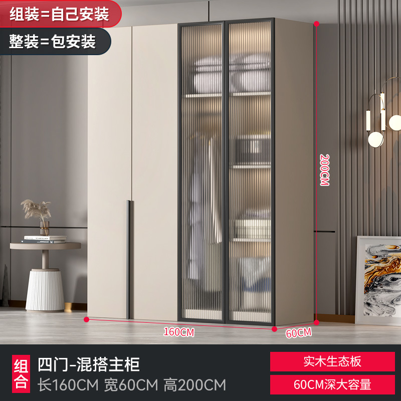 가정용 침실을 위한 맞춤형 대형 옷장 현대적인 단순한 작은 아파트 단단한 나무 유리 캐비닛 보관 라이트 럭셔리 임대 L&