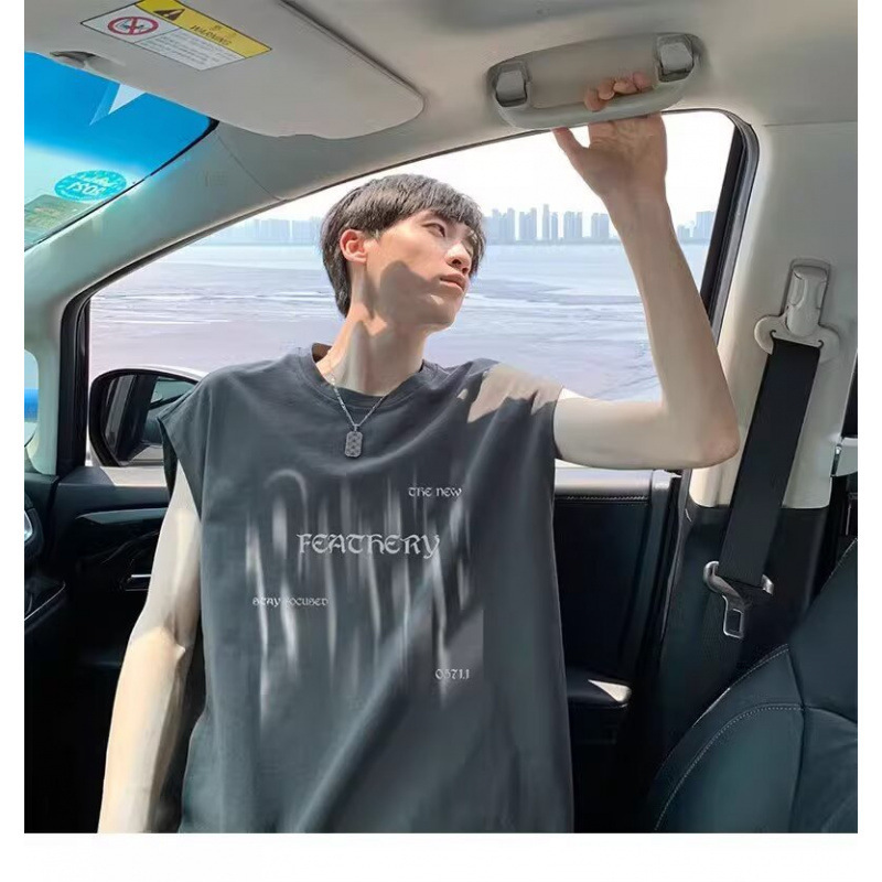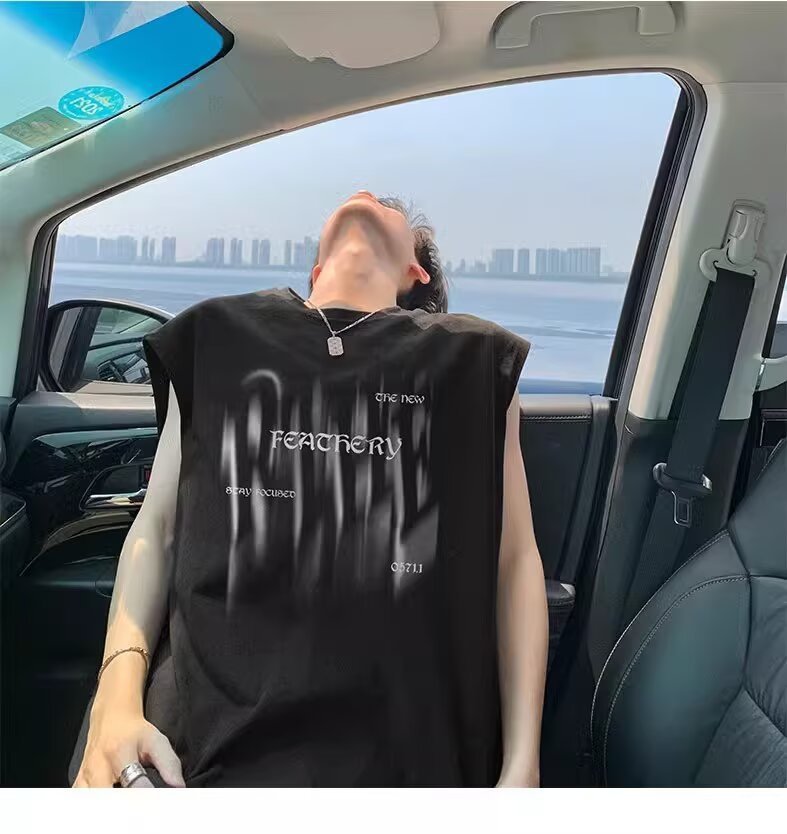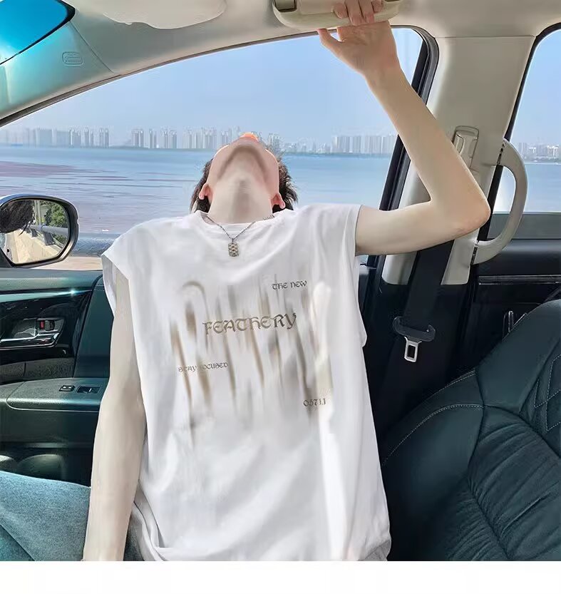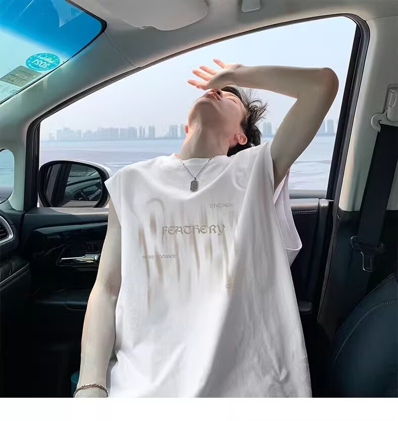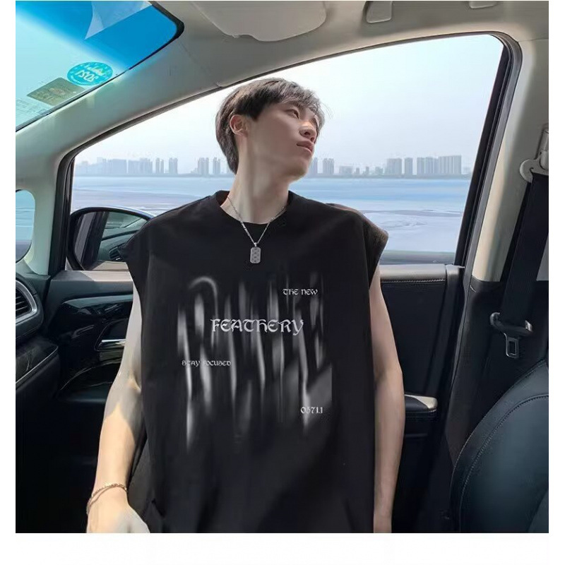 미국 스타일 헤비웨이트 순면 트렌디 프린트 민소매 남성 여름 패션 브랜드 캐주얼 다용도 루즈핏 화이트 조끼 탑