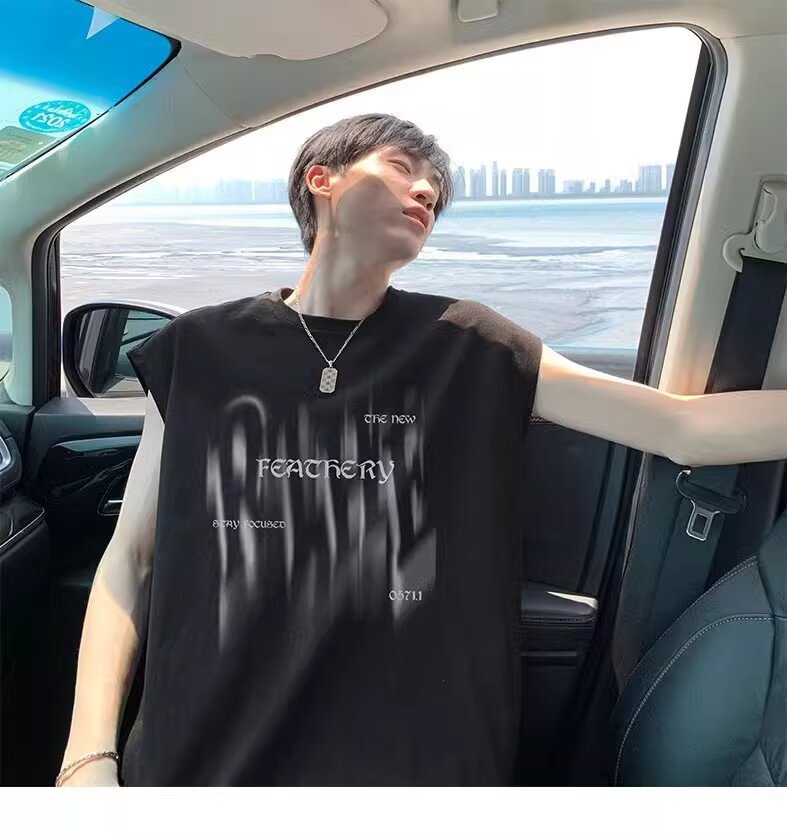 미국 스타일 헤비웨이트 순면 트렌디 프린트 민소매 남성 여름 패션 브랜드 캐주얼 다용도 루즈핏 화이트 조끼 탑스토어 가기